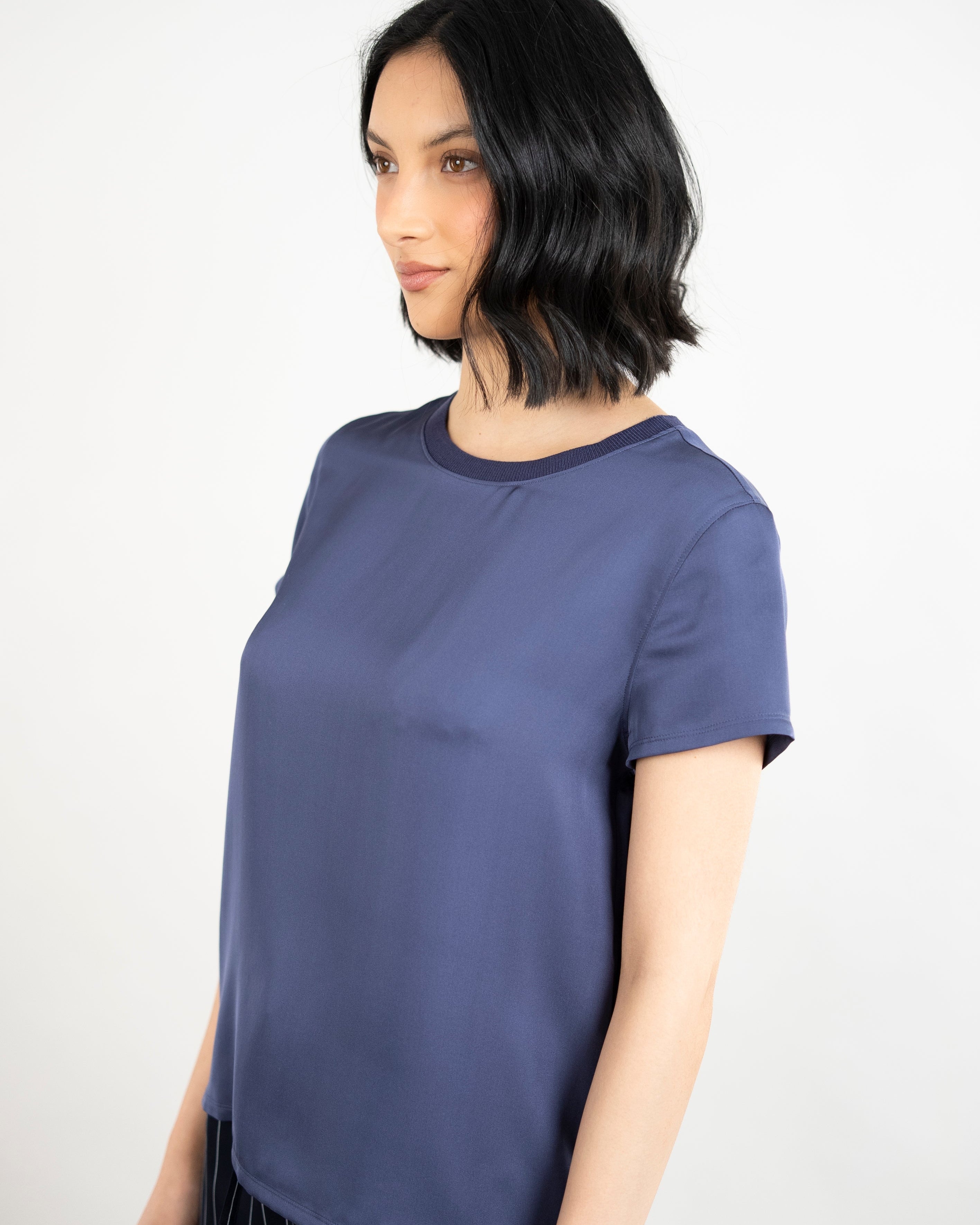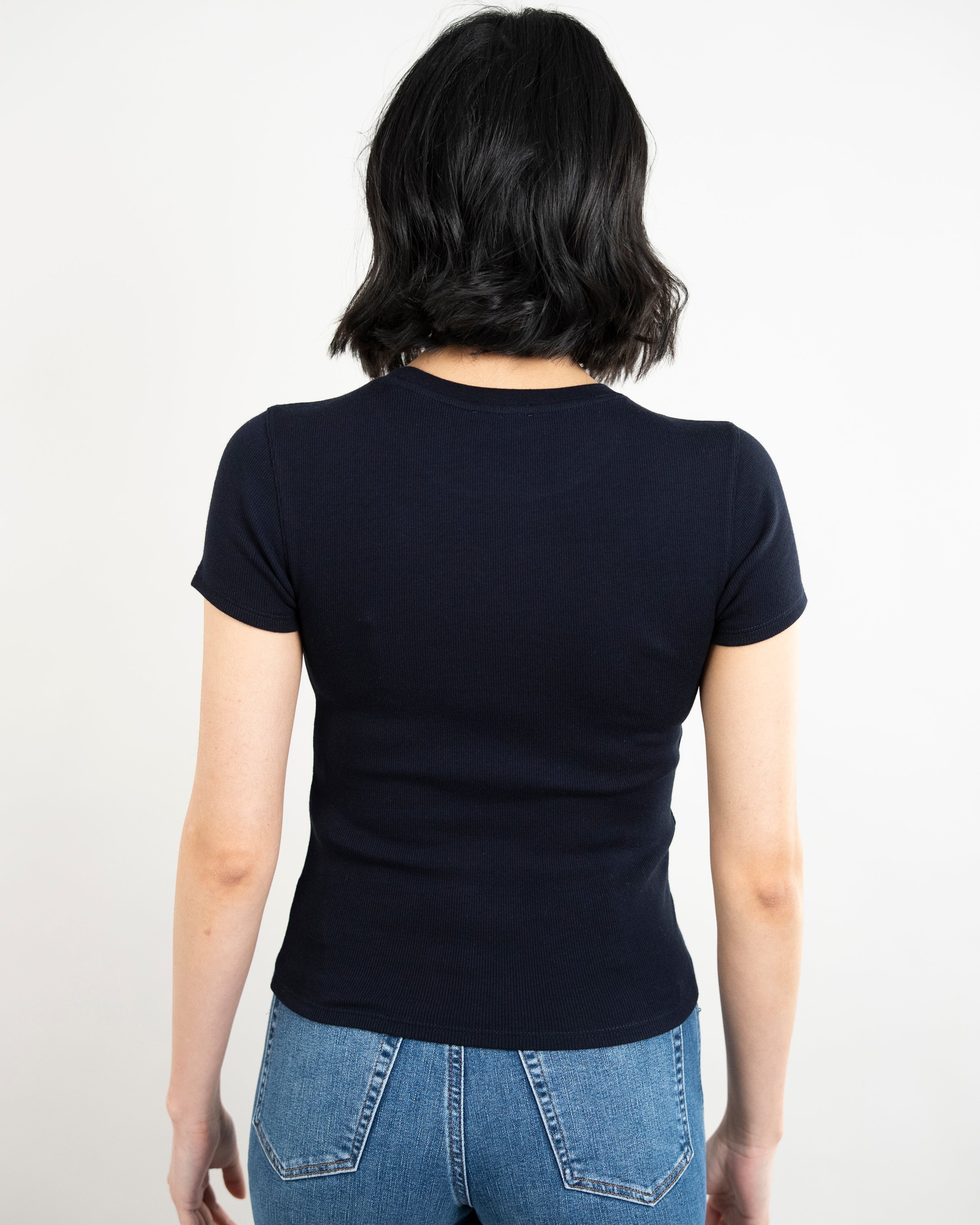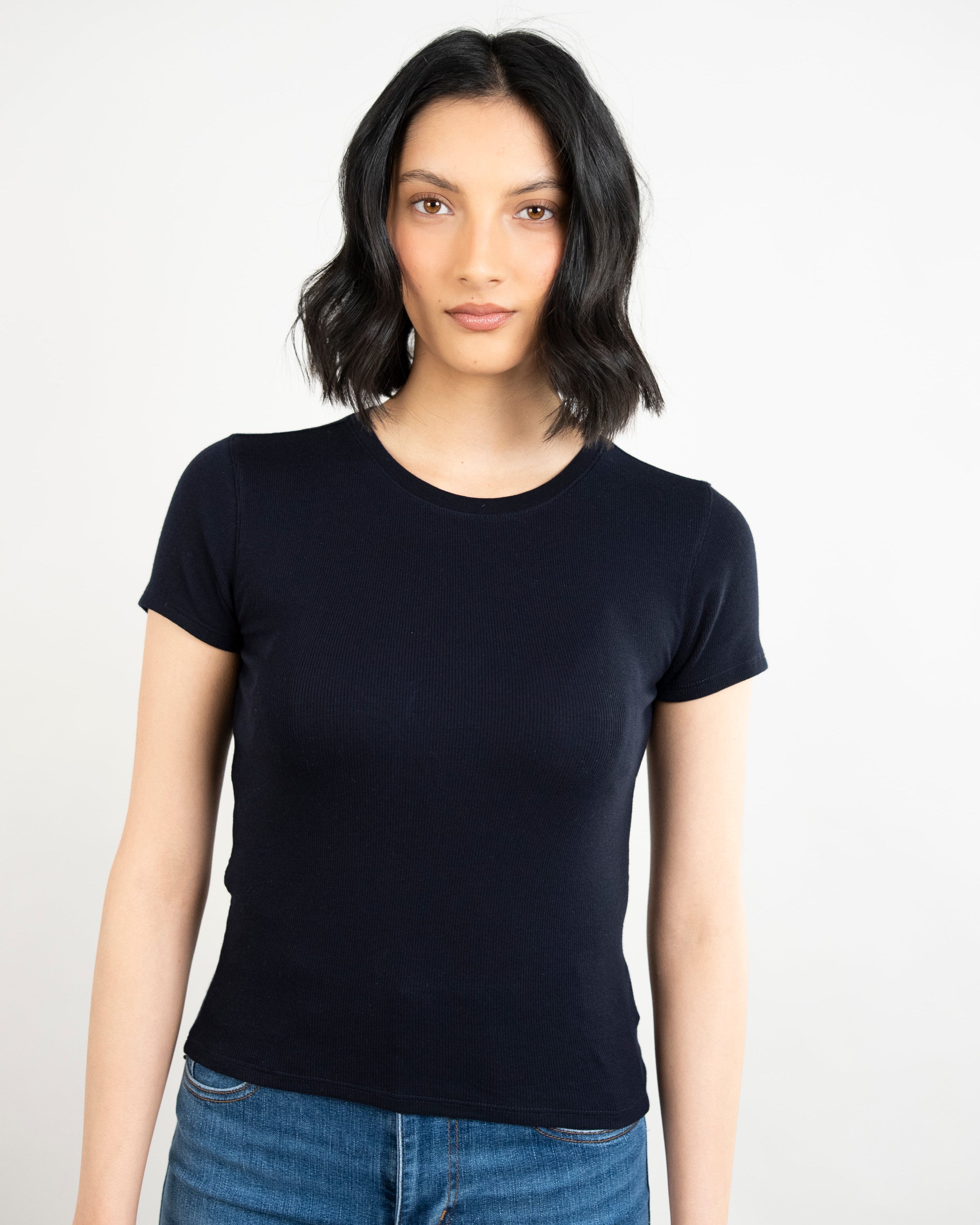 Short Sleeve Pima Reverse Spray Baby Tee - Blue Be