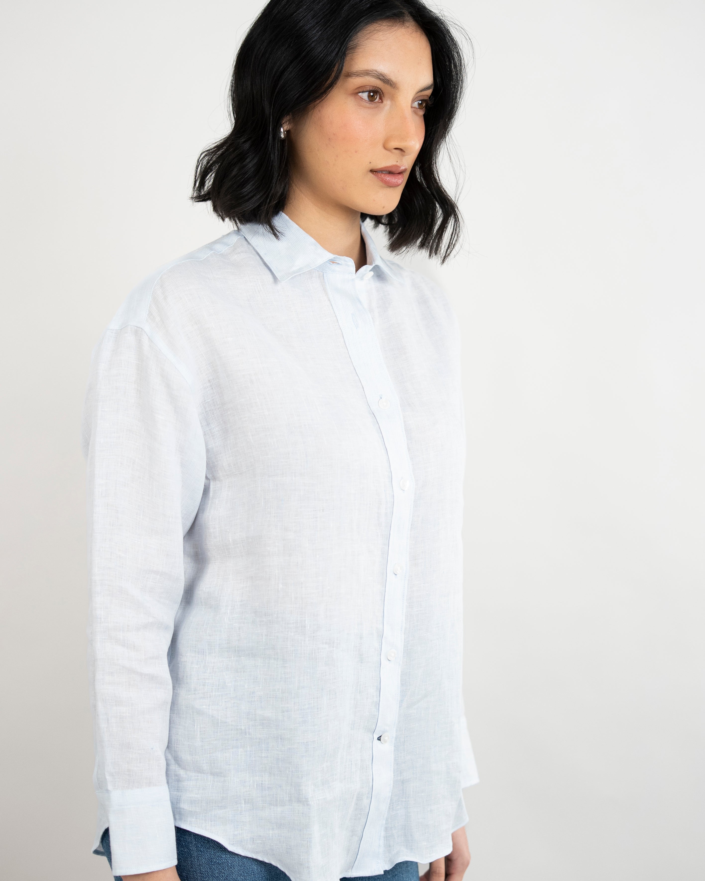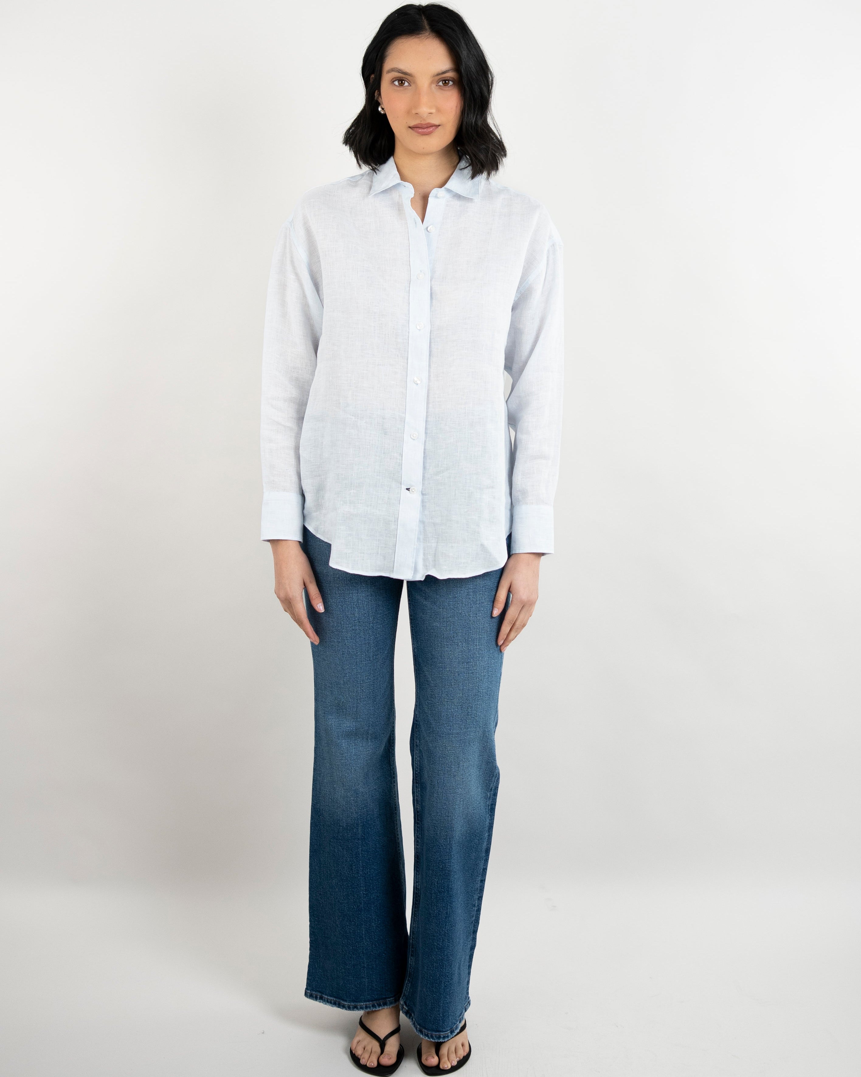 Long Sleeve Linen Stripe Boyfriend Shirt - Tahitia