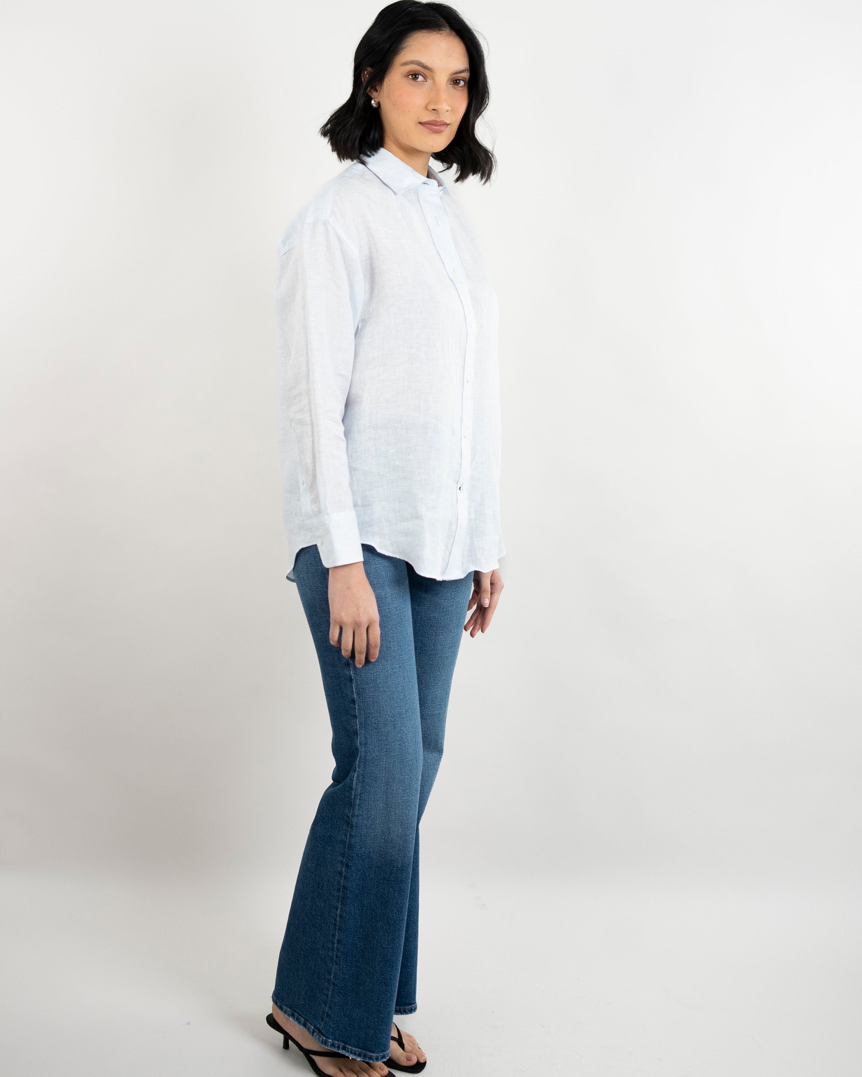 Long Sleeve Linen Stripe Boyfriend Shirt - Seacoast