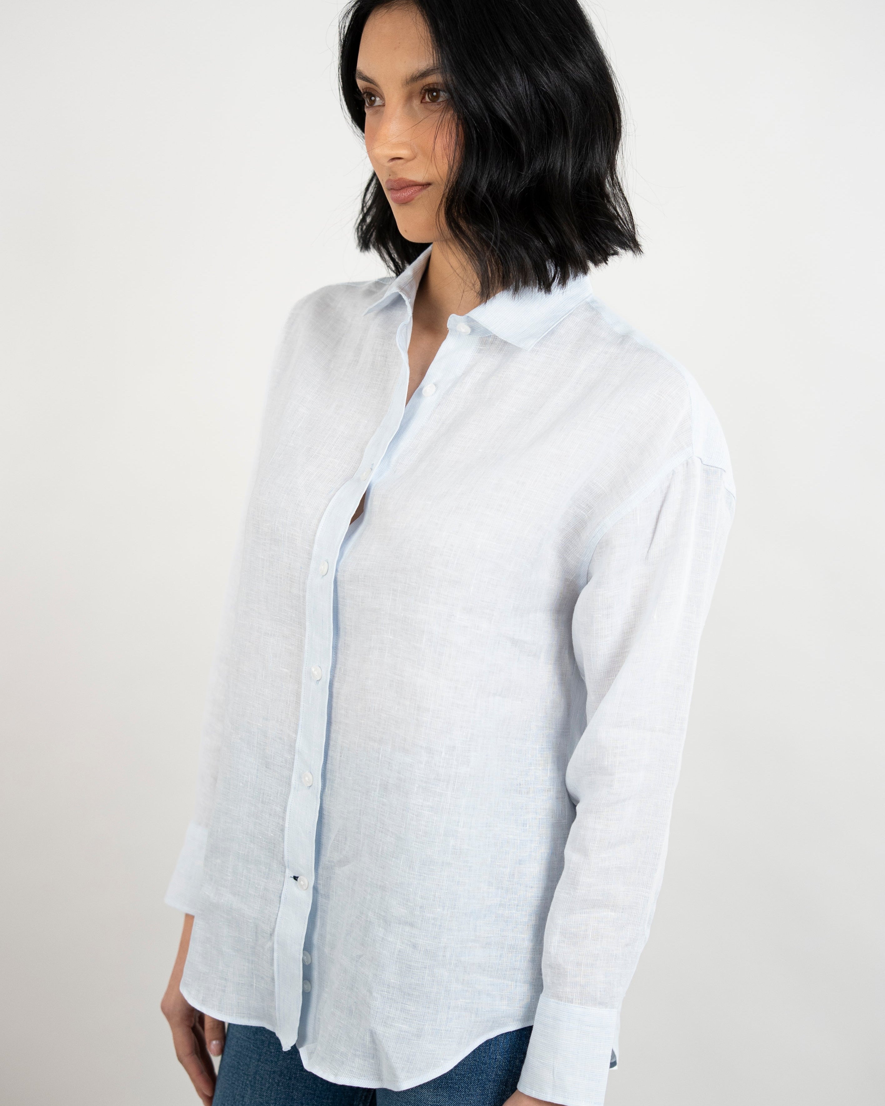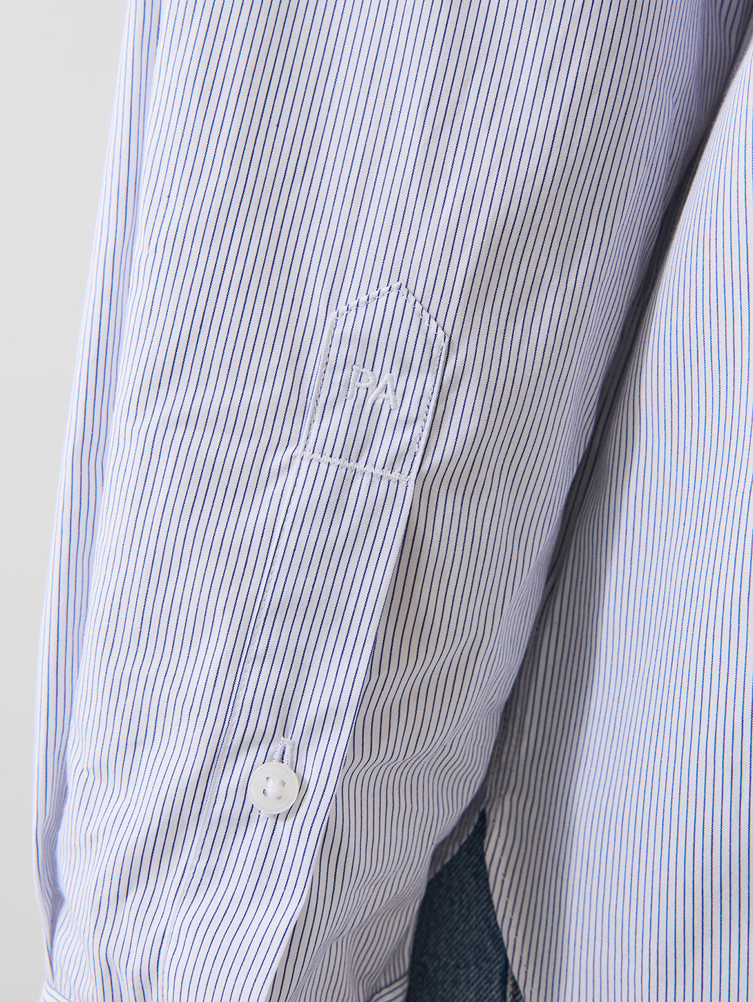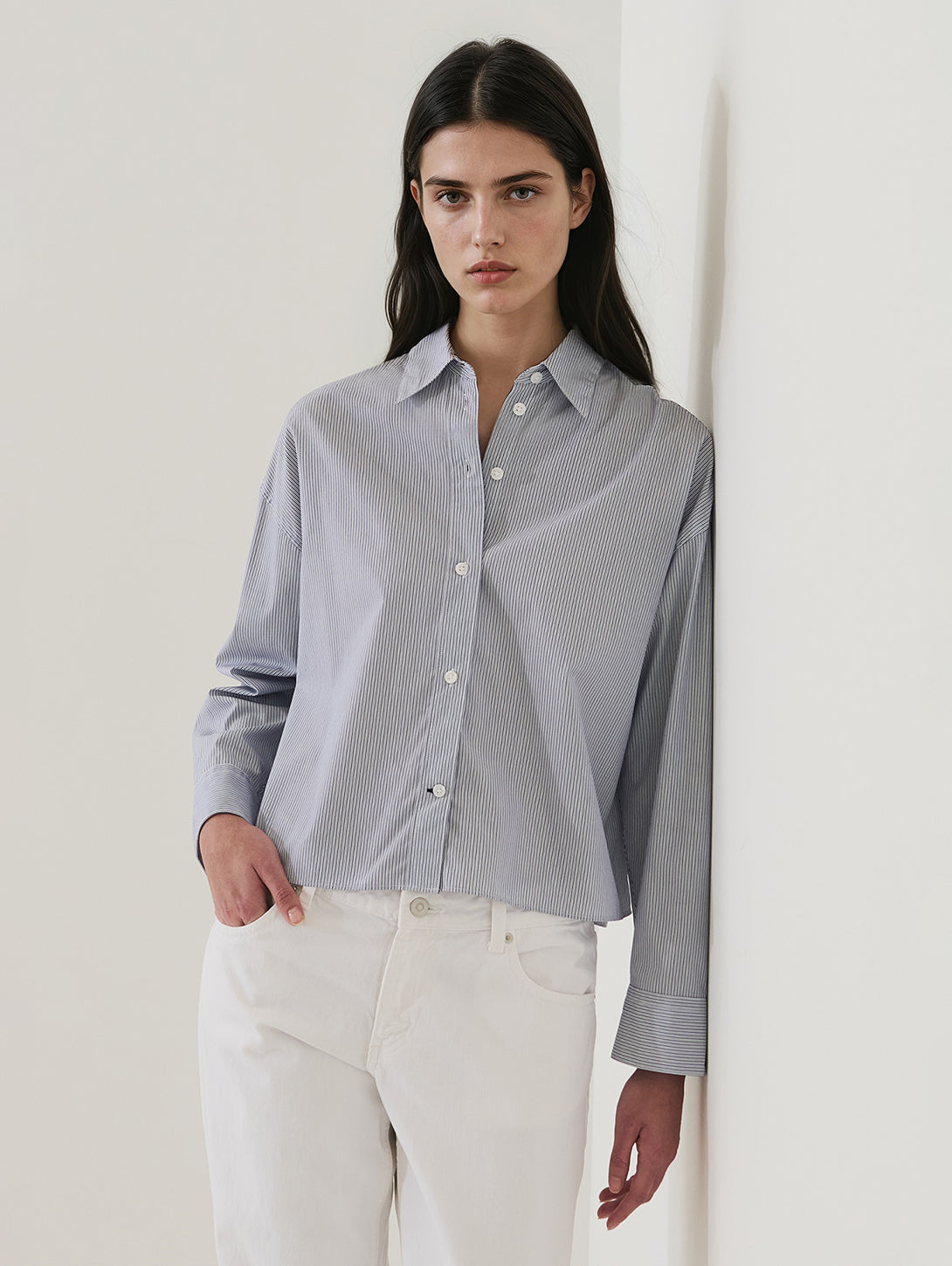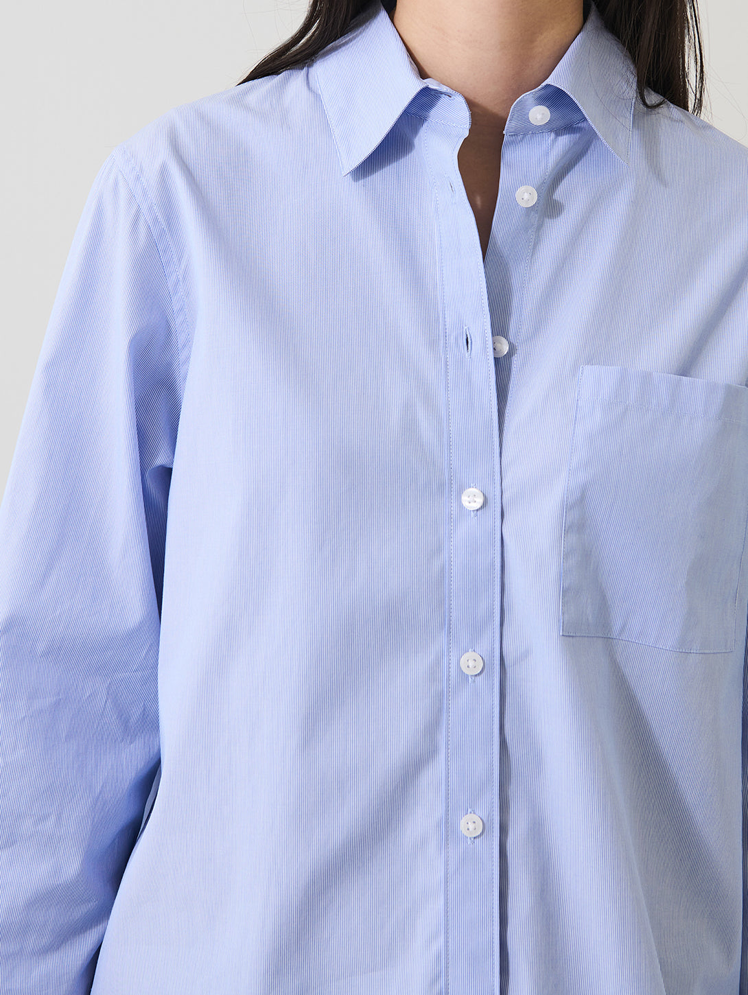 Long Sleeve Cotton Stripe Boxy Shirt - Pale Sky