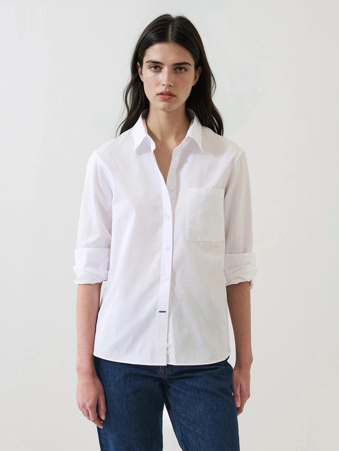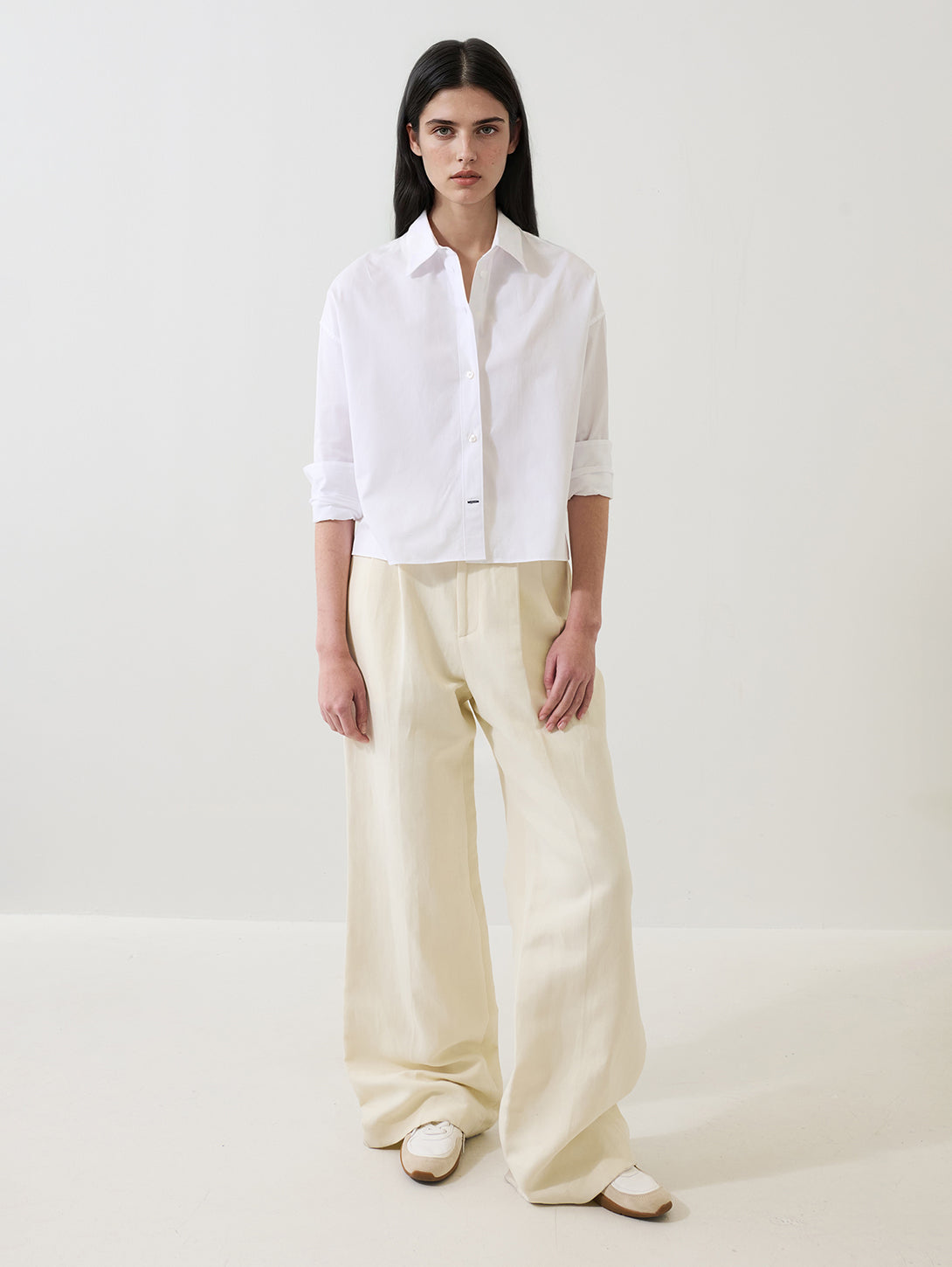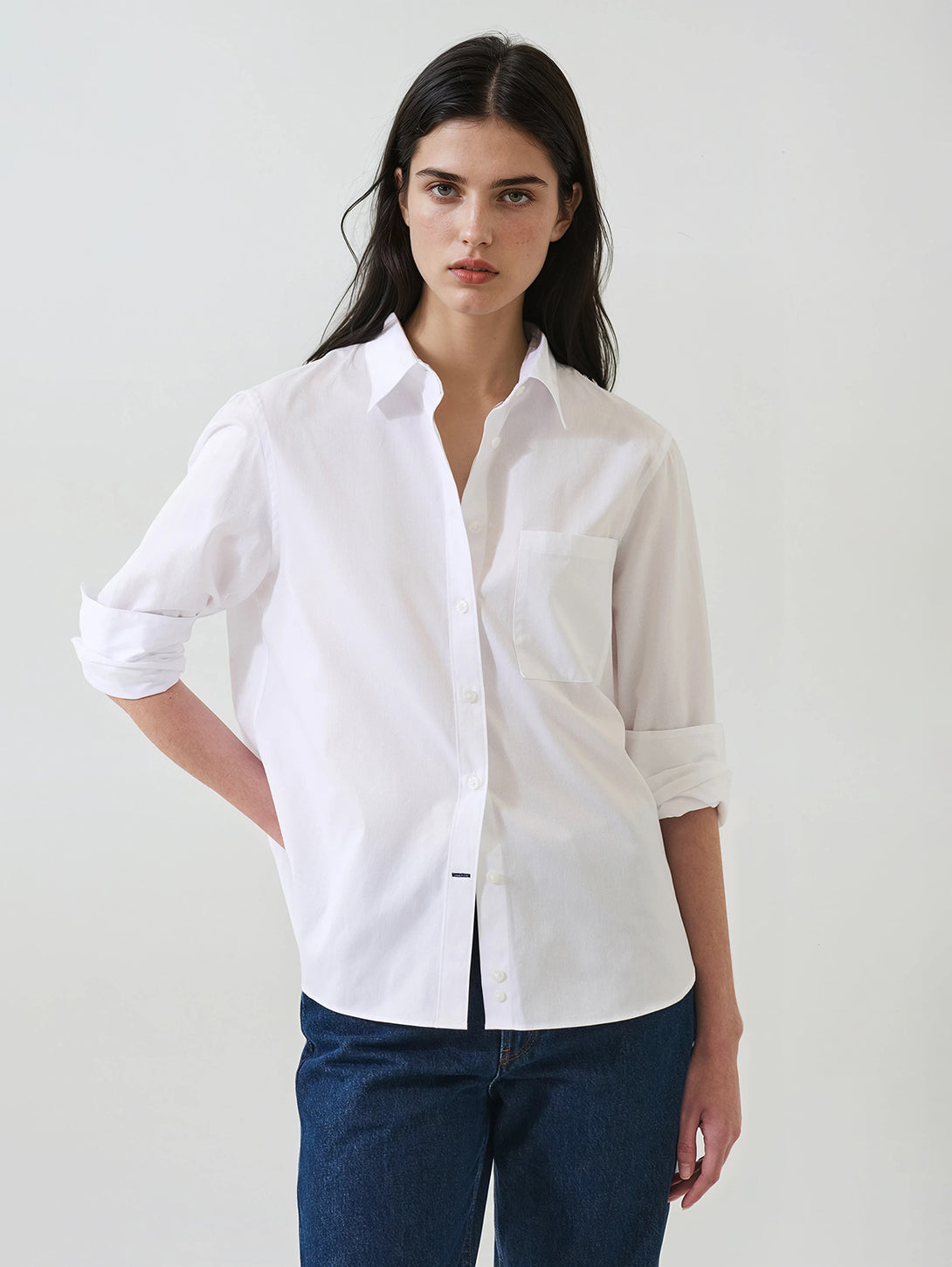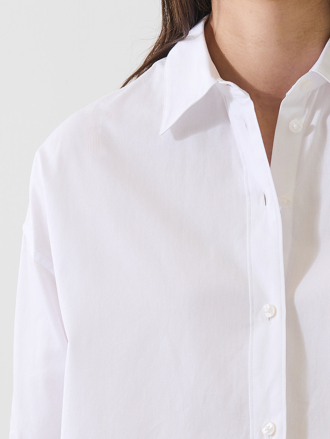 Long Sleeve Cotton Stripe Boxy Shirt - Pale Sky