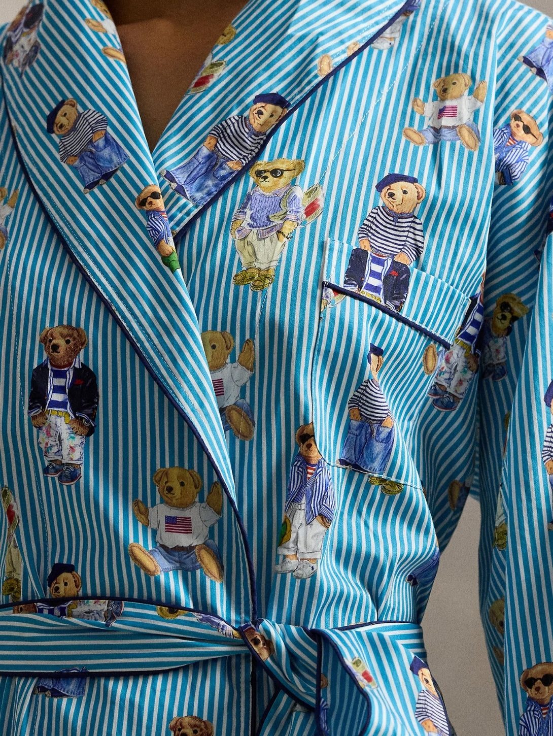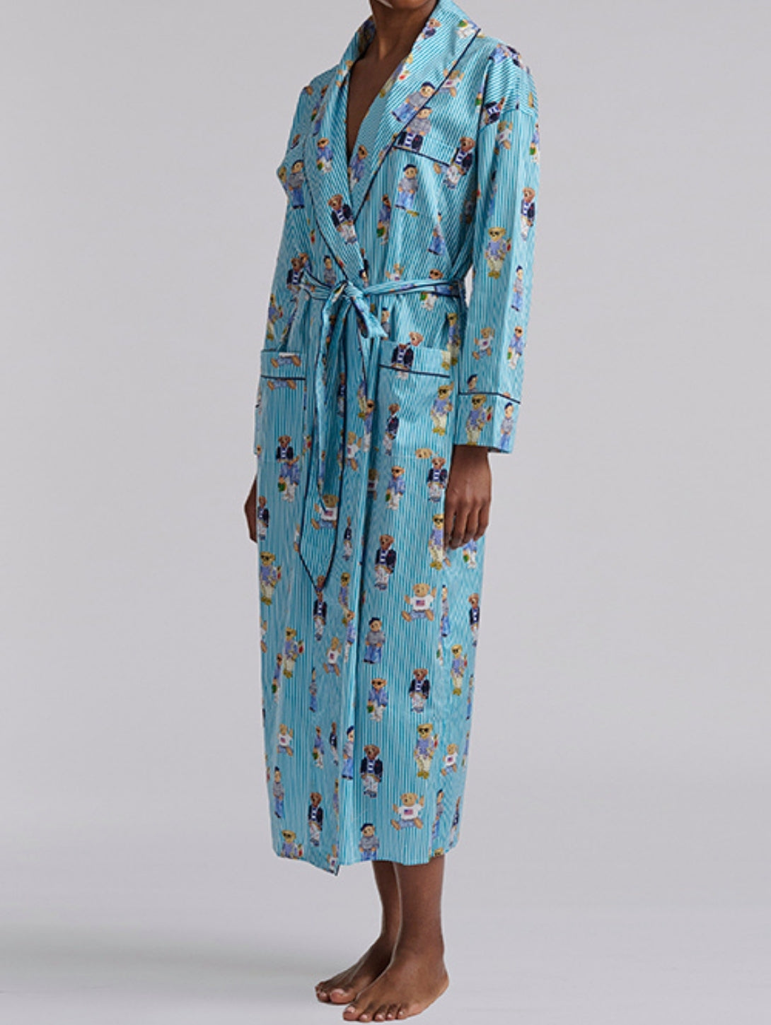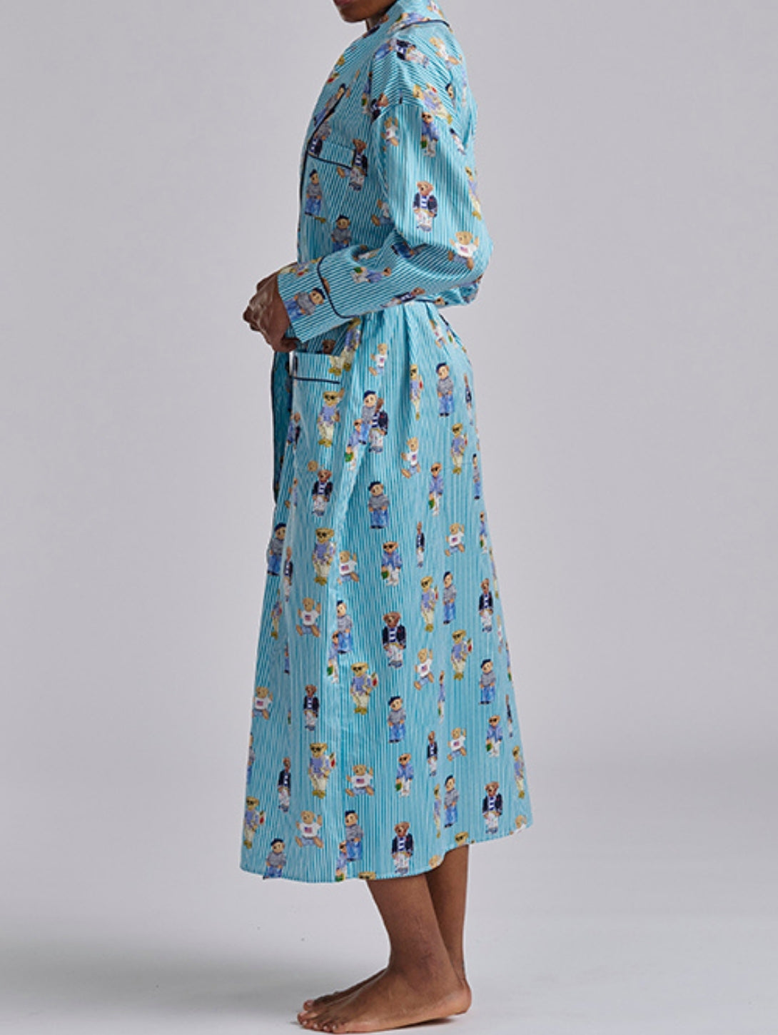 The Heritage Robe features an allover bear print in a refreshing Aqua Mist hue. Designed for easy layering over sleepwear, this full-length robe is crafted in a soft, comfortable fabric that feels just as good in the morning as it does at night. Thoughtful details like a self-tie belt and front patch pockets add everyday functionality to this timeless lounge essential.