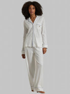 A refined pajama set inspired by classic menswear tailoring. Featuring a button-front top and matching pant, this knit oxford set balances structure with softness for elevated lounging.