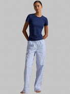 A polished take on everyday sleepwear, the STP Pant with Logo Elastic features classic vertical striping and a signature branded waistband for a modern finish. Designed with a relaxed straight-leg silhouette, this lightweight pajama pant delivers all-night comfort and effortless lounge appeal. Easy to pair with coordinating tops or tees, it’s a versatile staple.