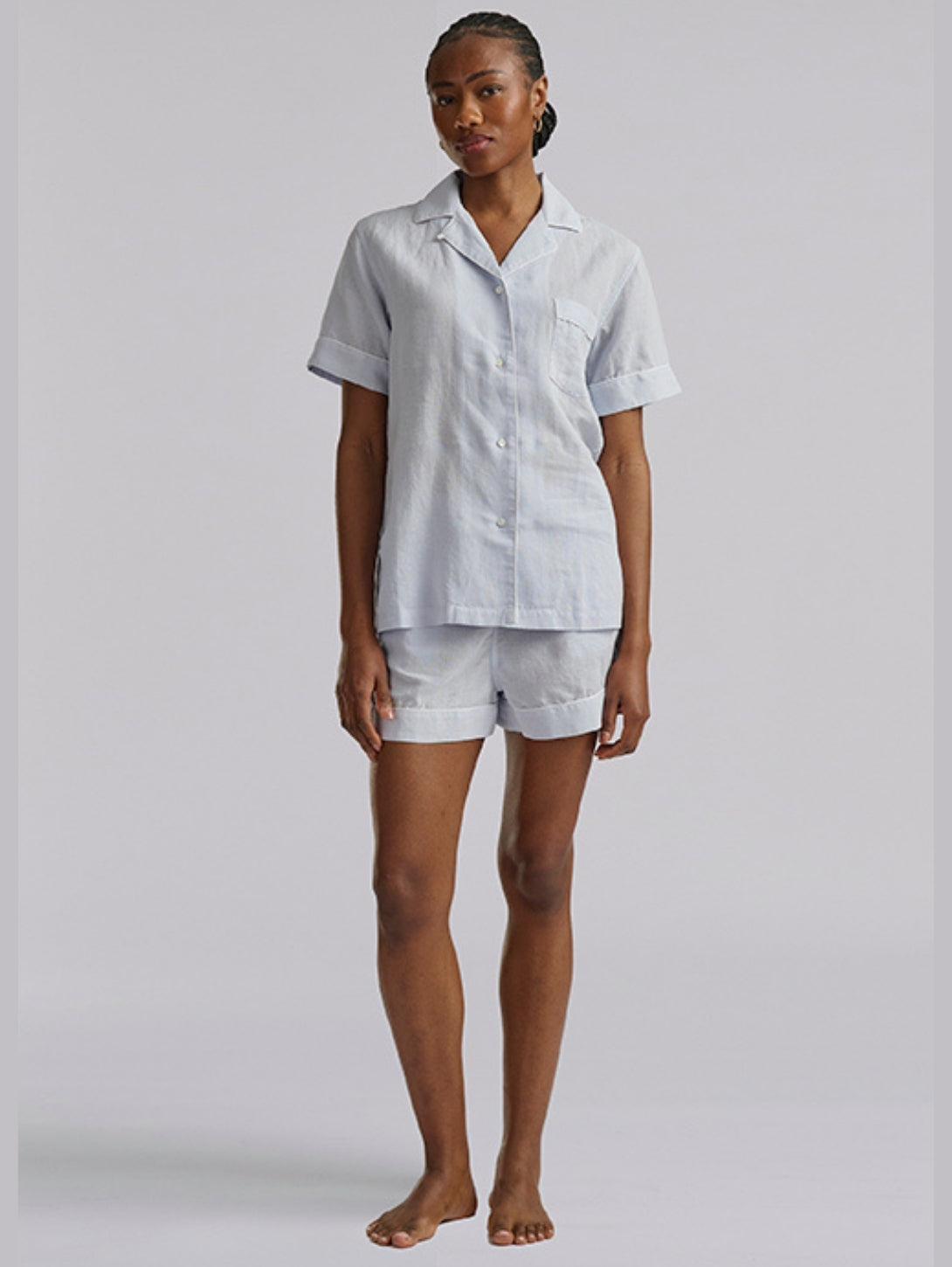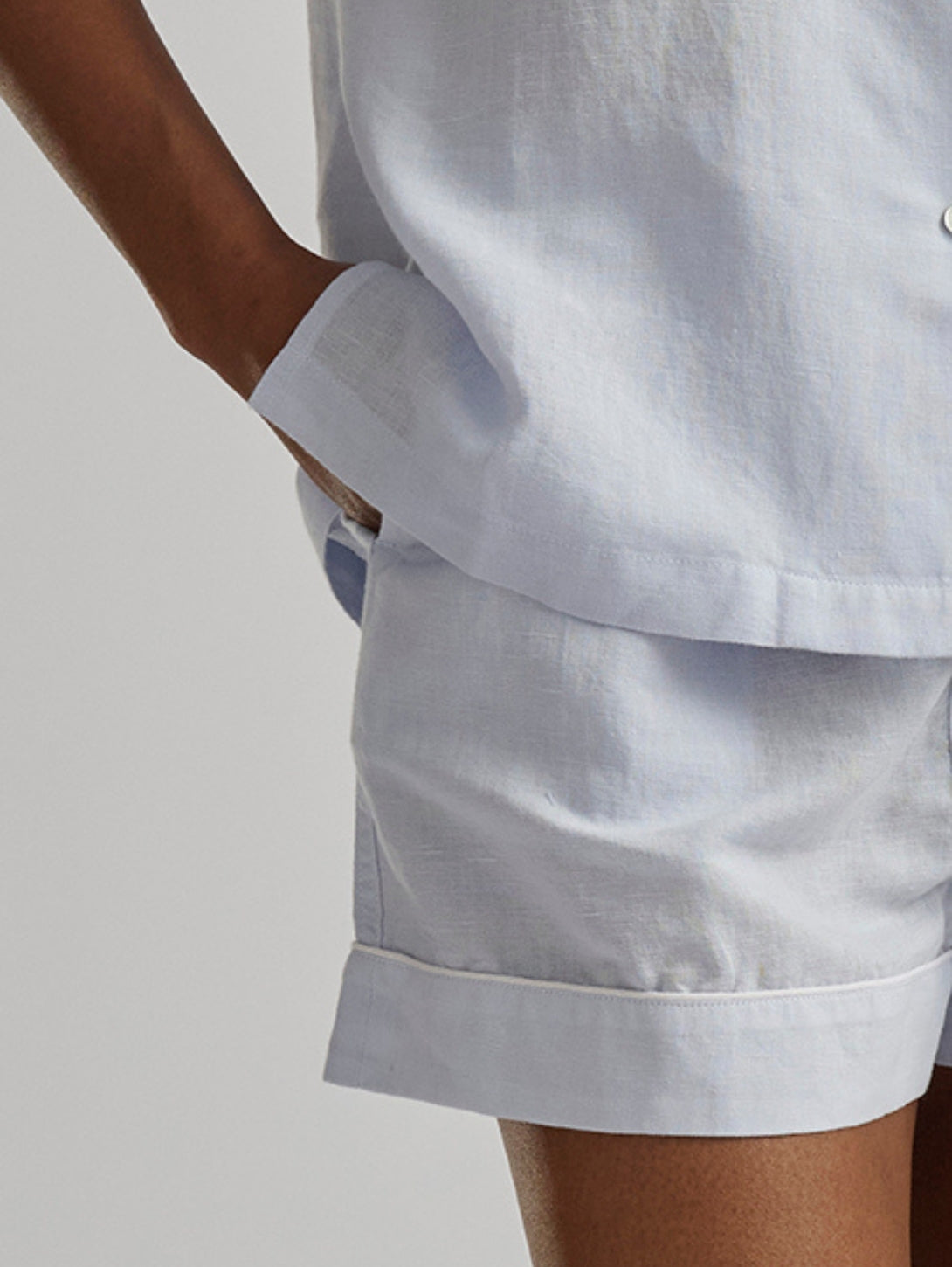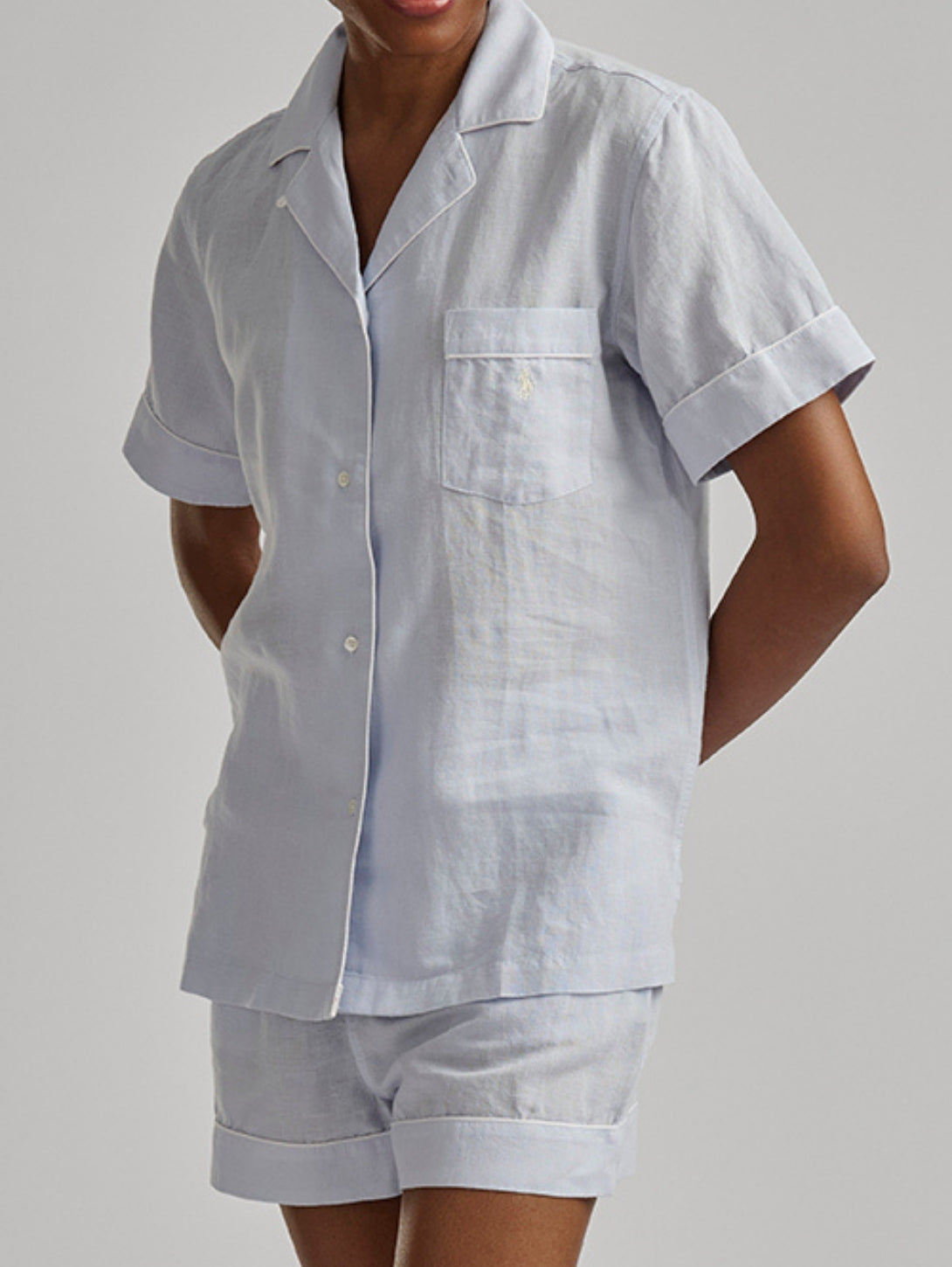 Short Sleeve Linen Short Set - Xenon Blue