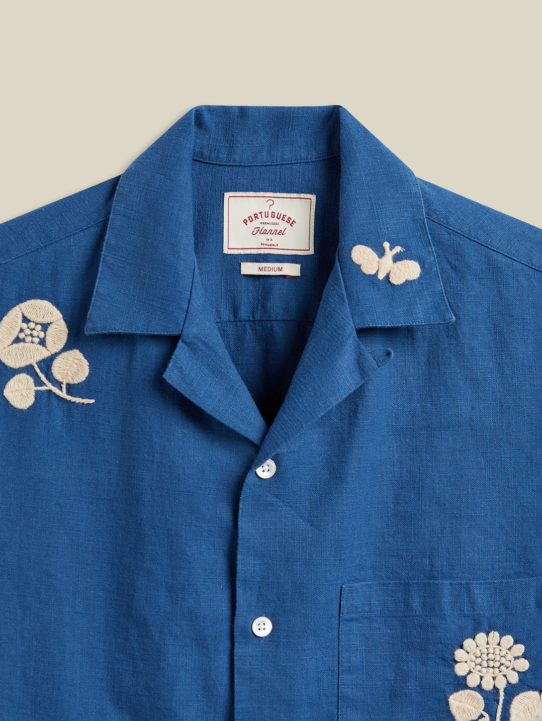 A refined menswear essential crafted from breathable ramie fabric, this blue shirt combines natural comfort with understated elegance. The intricate embroidery detailing adds a distinctive touch, elevating your everyday wardrobe with timeless sophistication and effortless style.