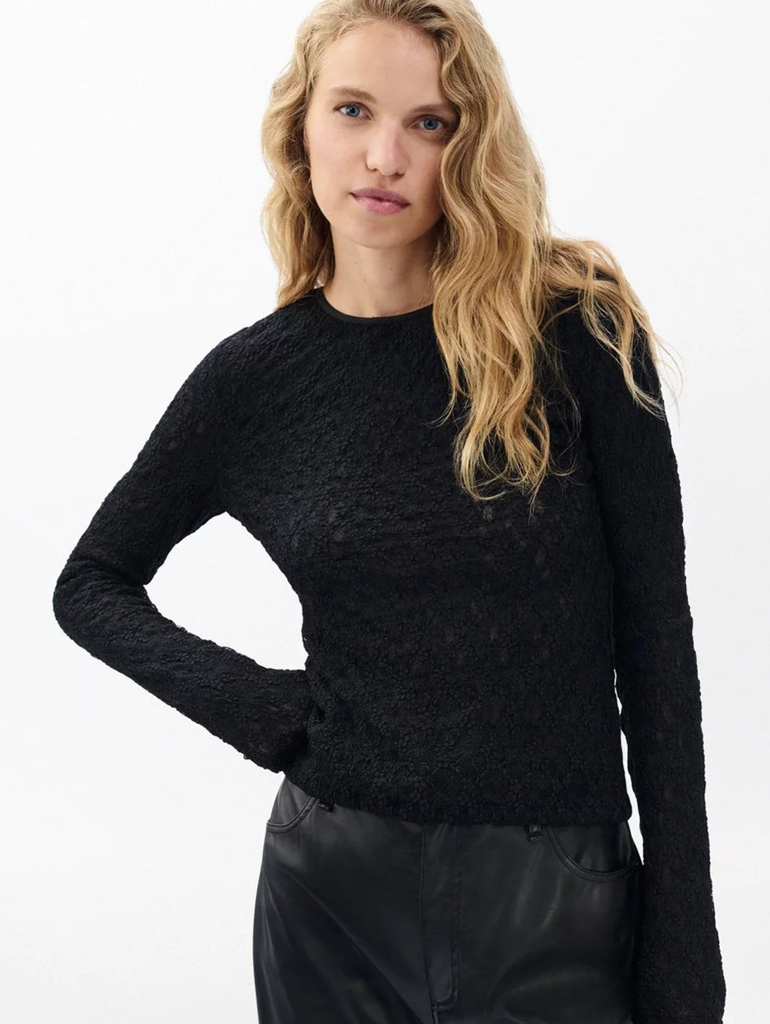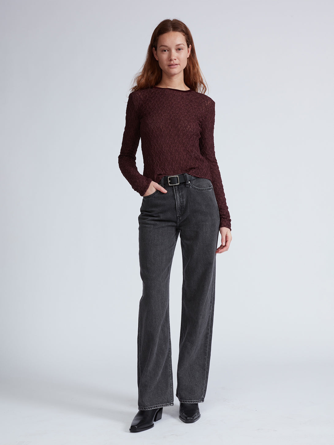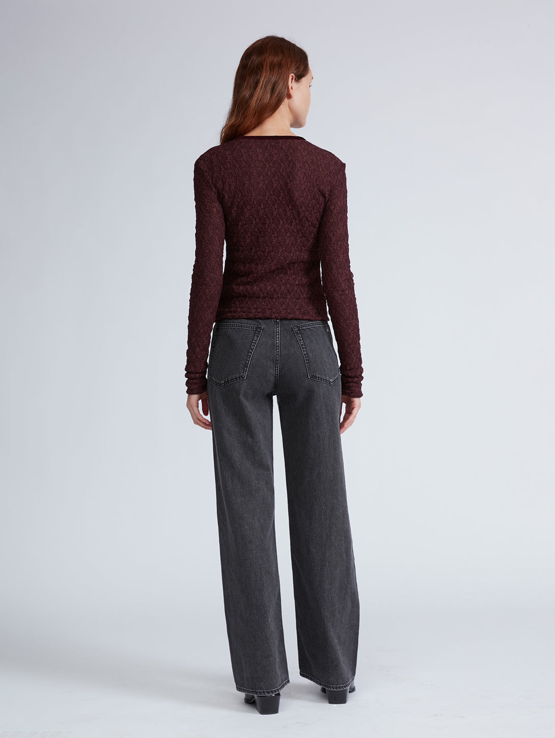 Ellie Lace Long Sleeve Tee - Bordeaux