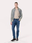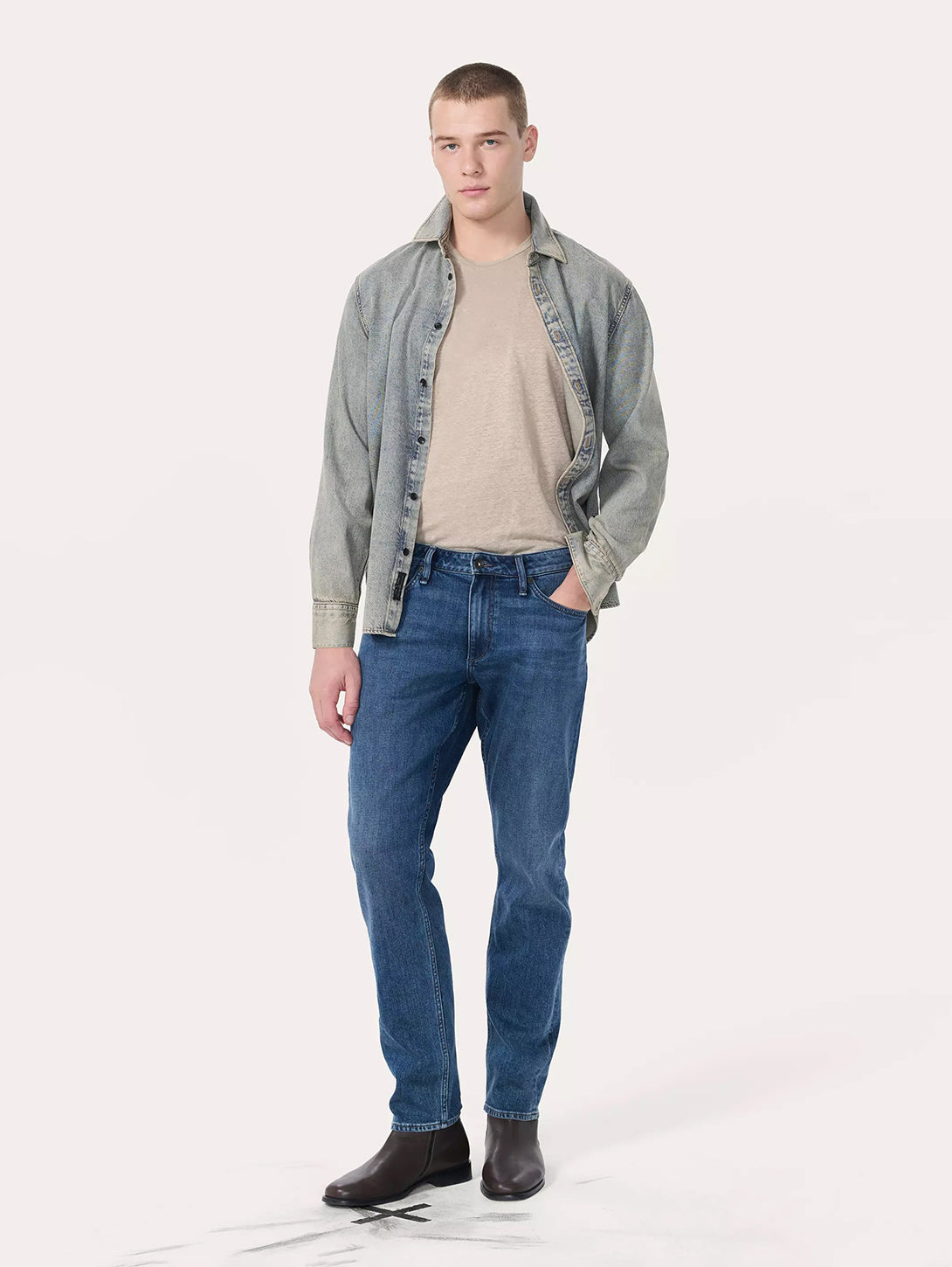Fit 3. Our athletic fit engineered for mobility. Mid-rise, additional room through the hip and thigh, with a tapered leg. Crafted from Authentic Stretch, a selvedge-inspired denim with an optimal touch of shape-holding stretch. In Greenpoint, a fresh medium-indigo wash made for summer days.