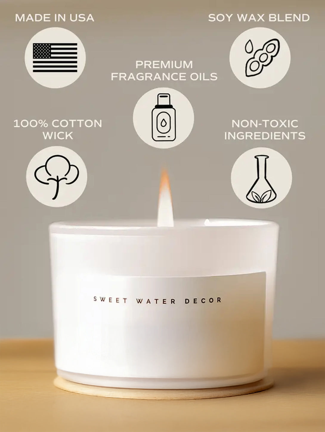 • Soy Wax, 100% Cotton Wick, Premium Fragrance Oil