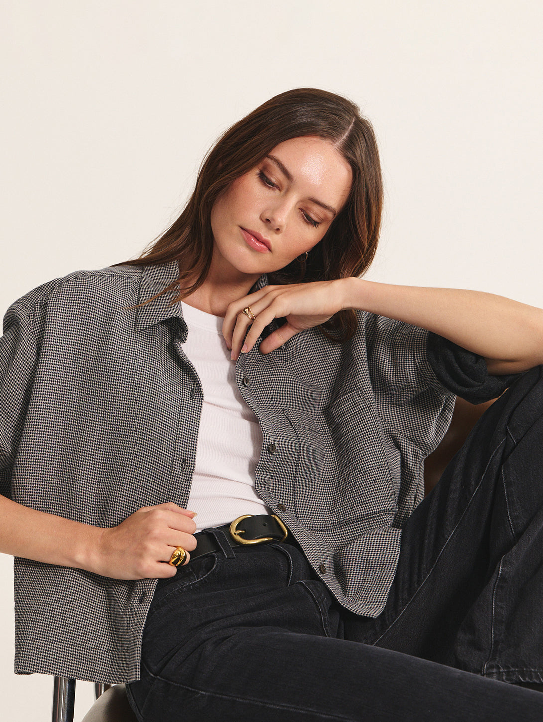 Adeline Gauze Shirt - Houndstooth