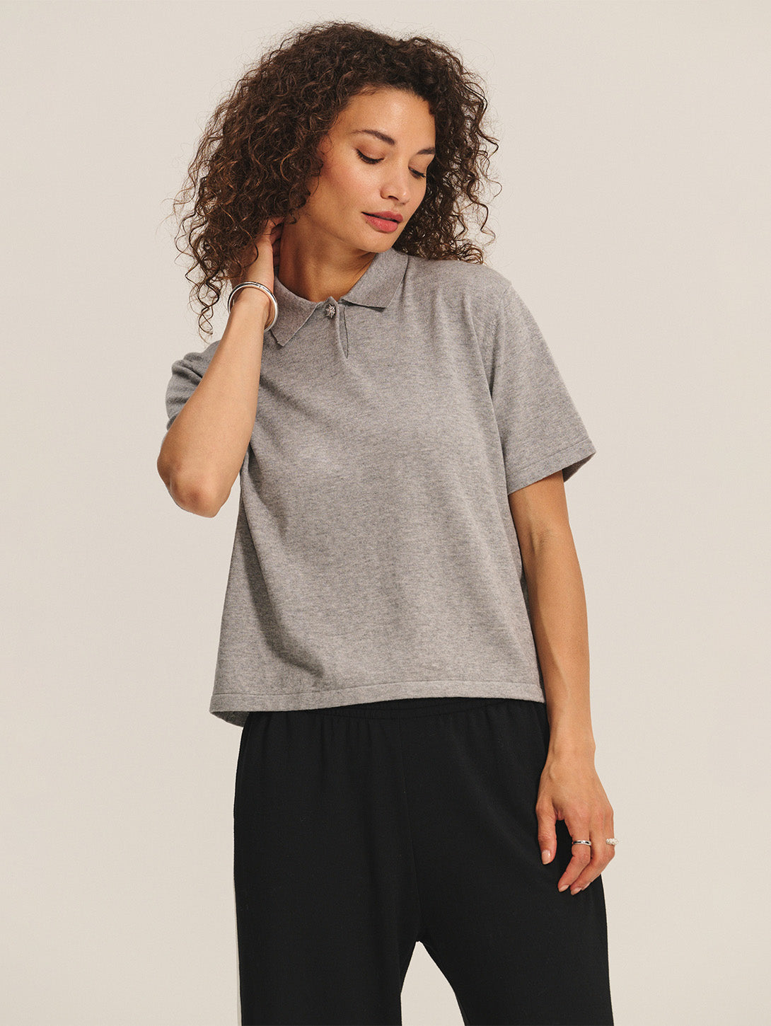Emerson Short Sleeve Polo Sweater - Heather Grey