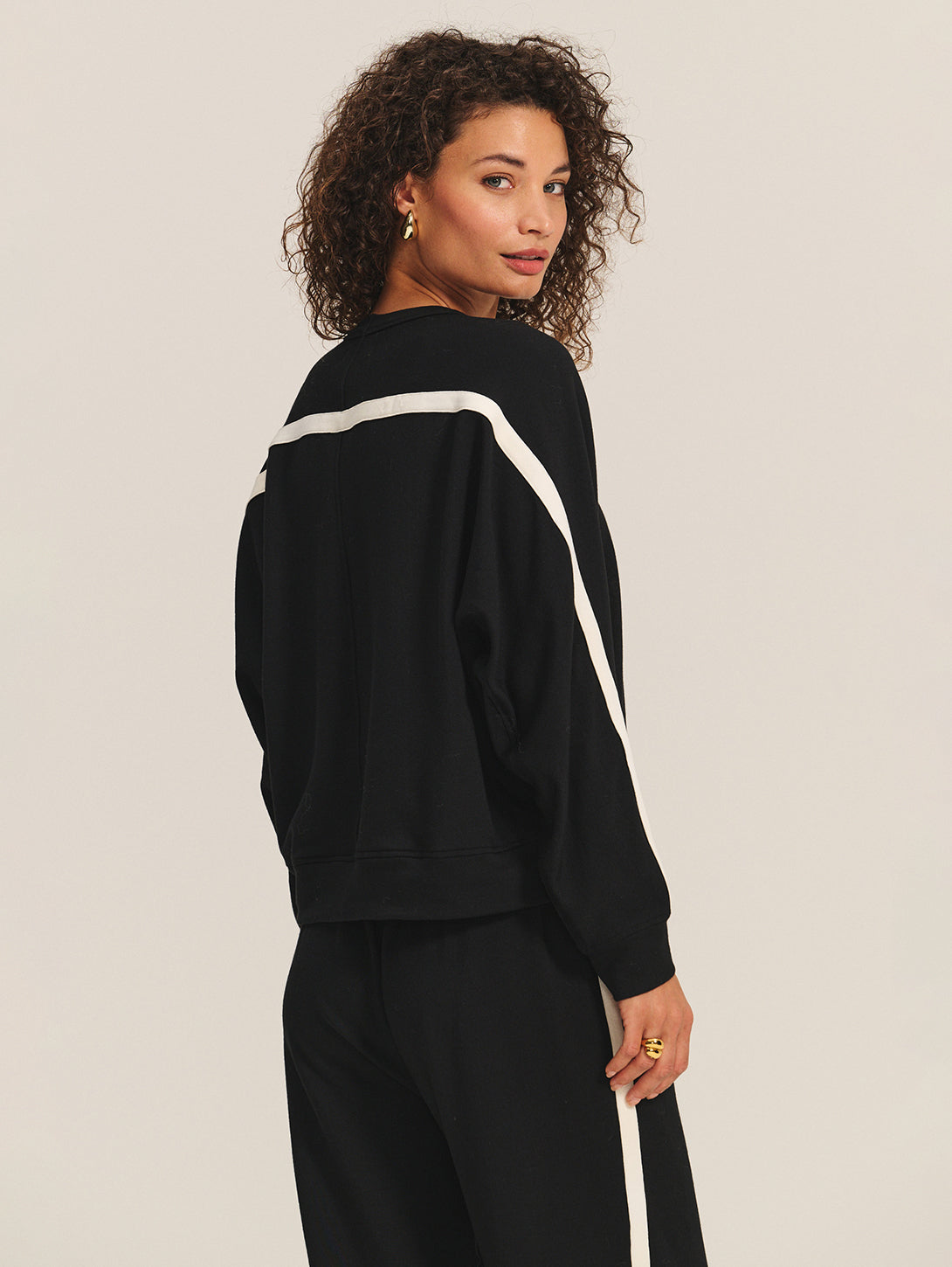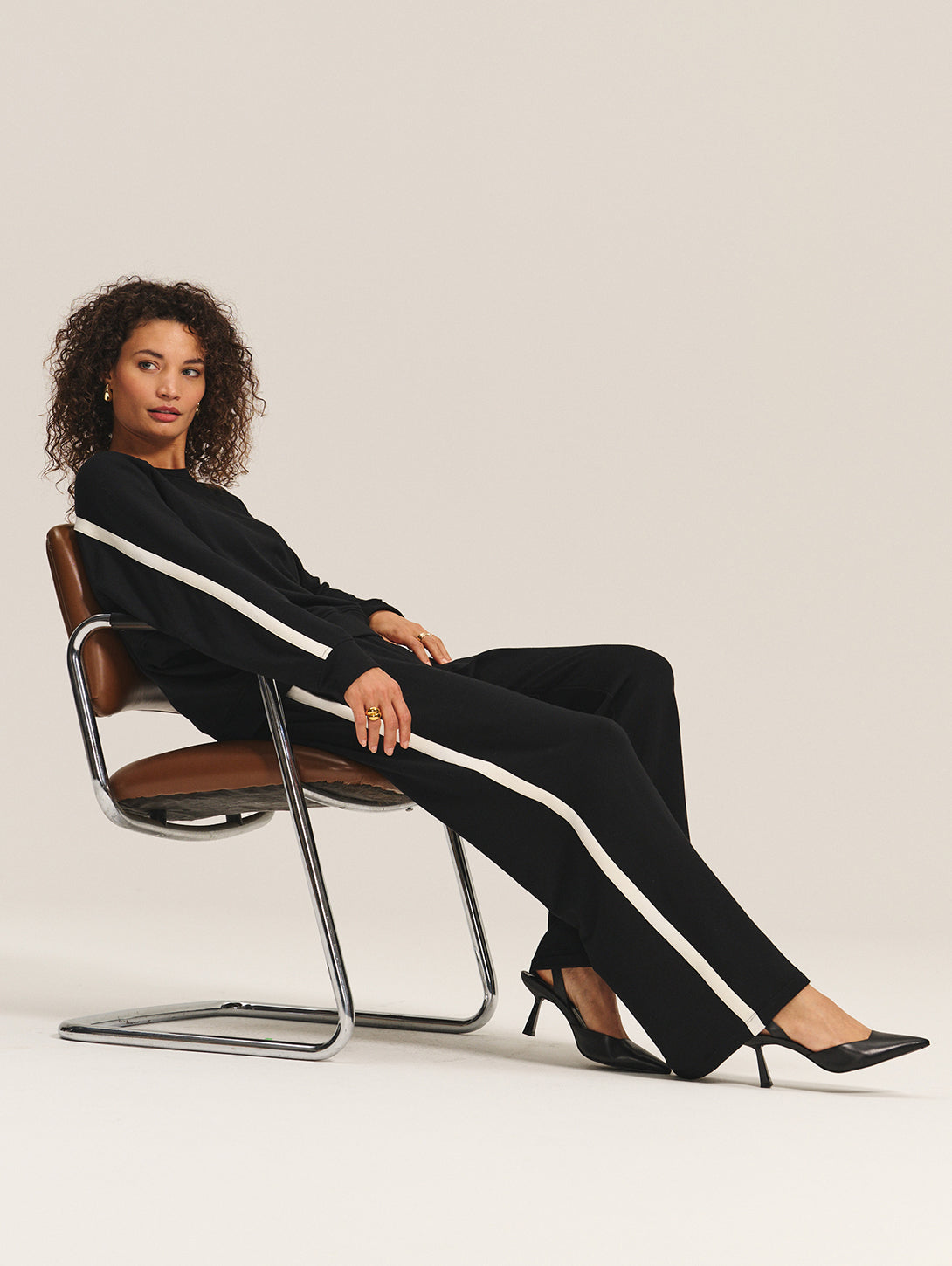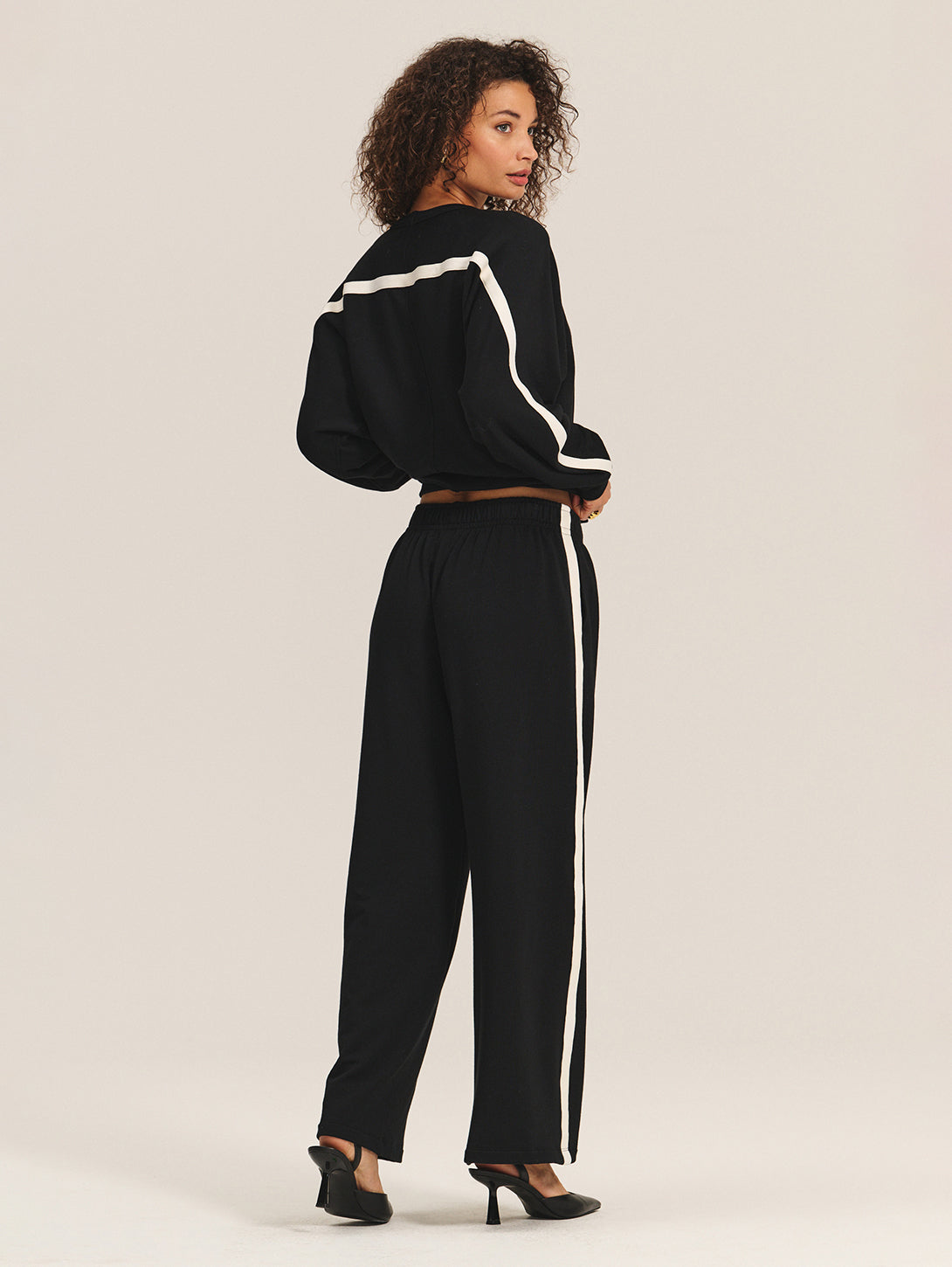 Crafted from midweight lush fleece, this sweat-pant offers a relaxed wide-leg fit with an elastic pull-on waist for effortless comfort. Featuring contrasting color tape along the sides and two front pockets, it pairs perfectly with the Frankie Sweatshirt for a coordinated, modern look.