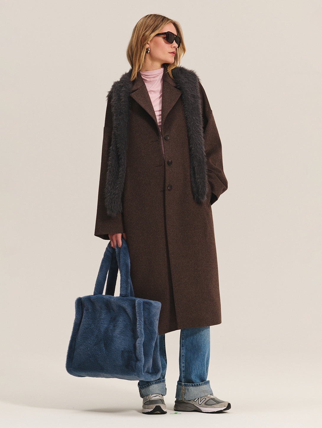 Timeless and sophisticated, this wool-blend coat features a classic lapel collar, front slash pockets, and a fully lined interior for a polished finish. Designed with clean lines and a tailored silhouette, it’s a versatile outer layer that elevates any look.
