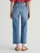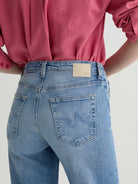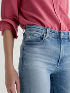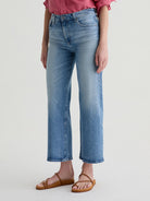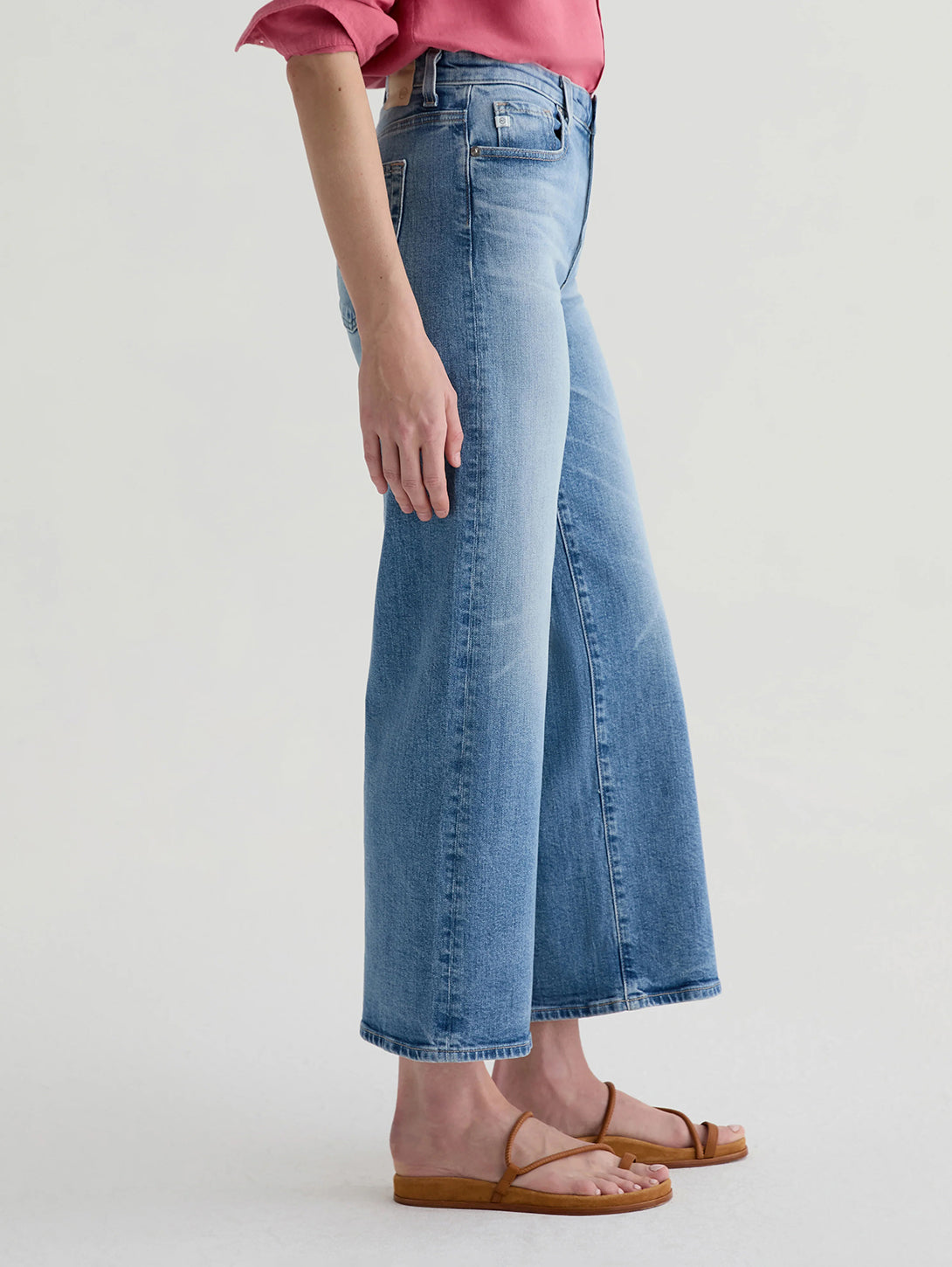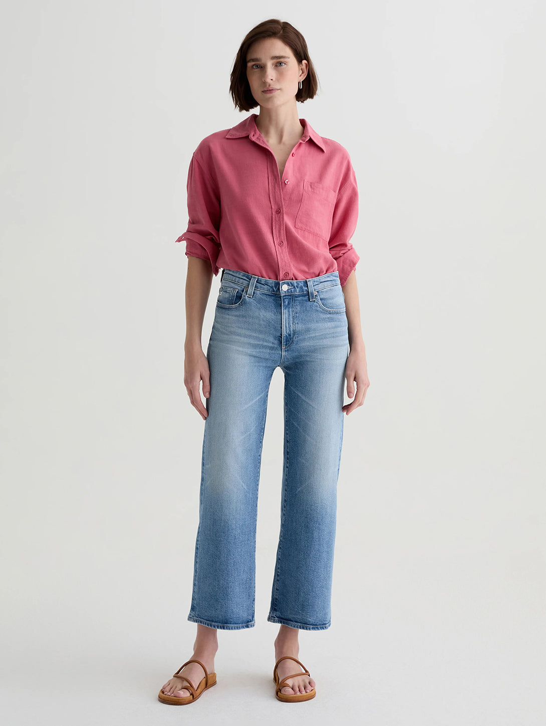 Saige Wide Leg Crop features a high-rise waist and loose, cropped legs with softly frayed raw hems.