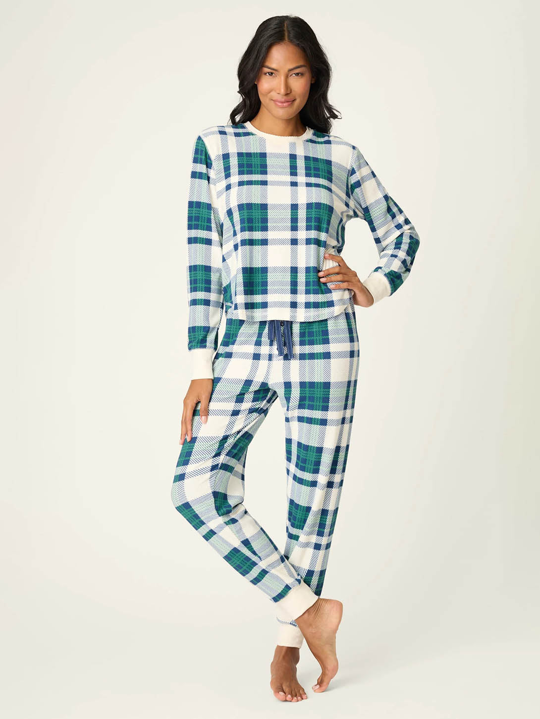 Cozy Life Thermal Velour Plaid PJ Set - Natural