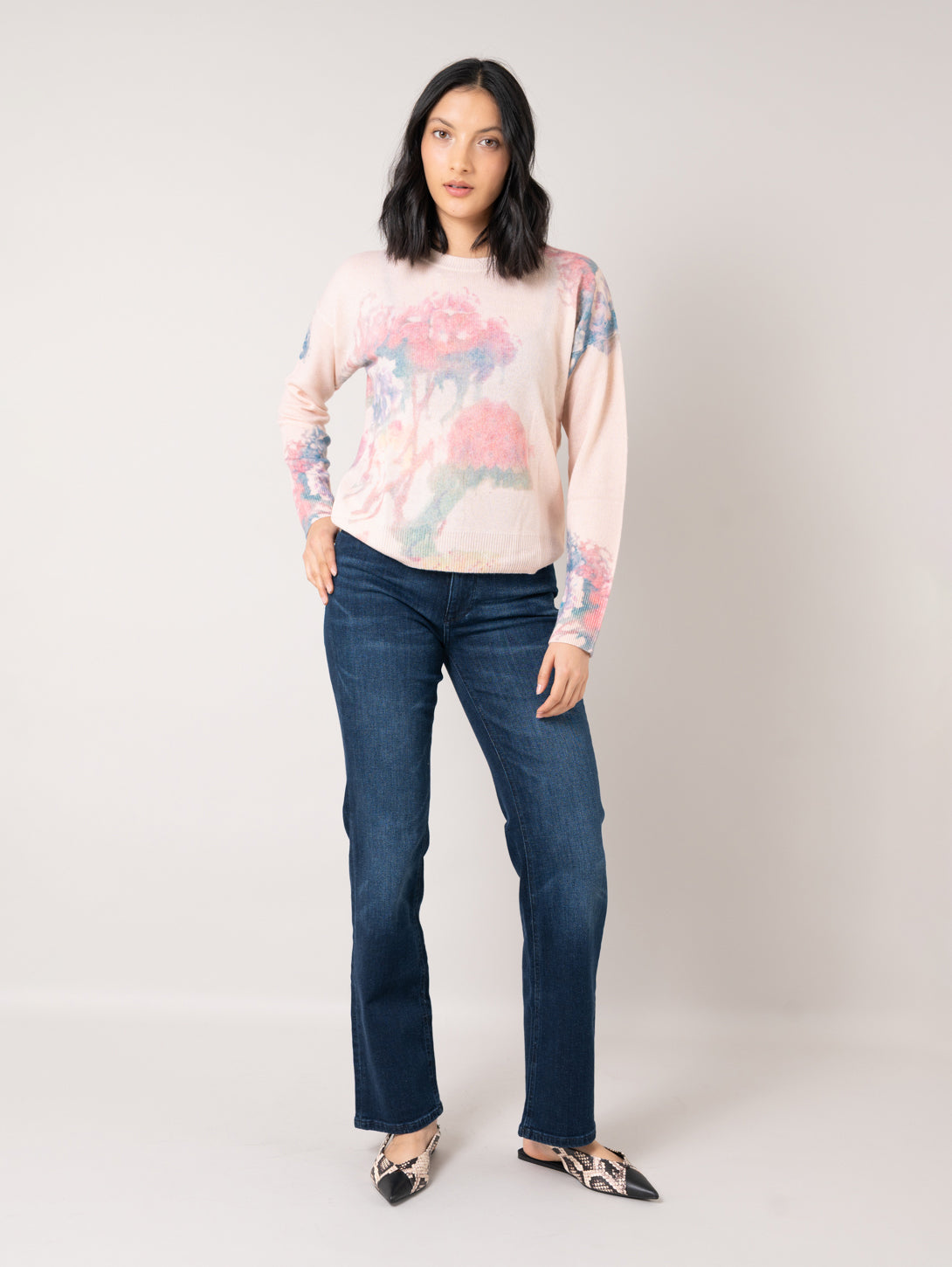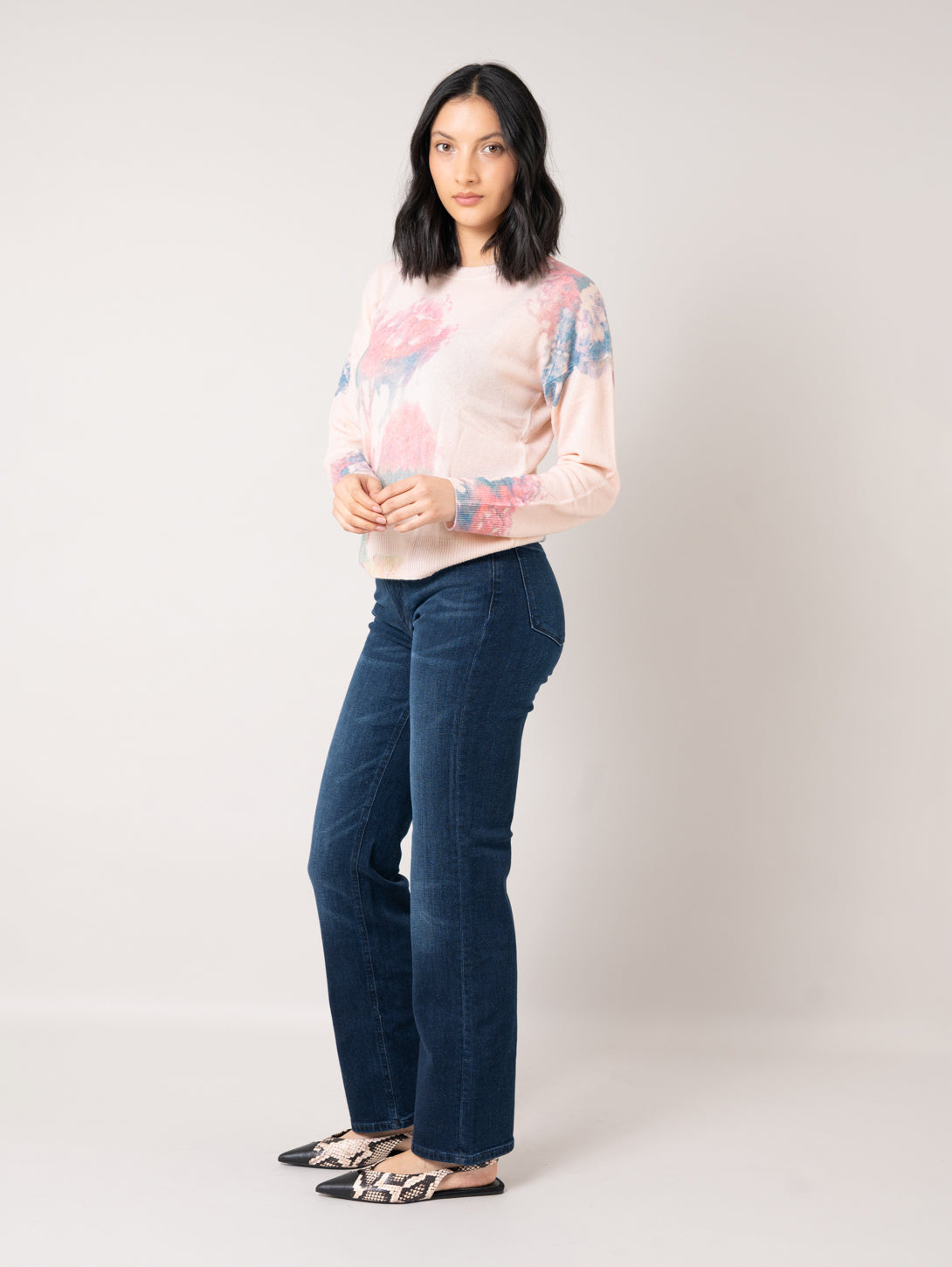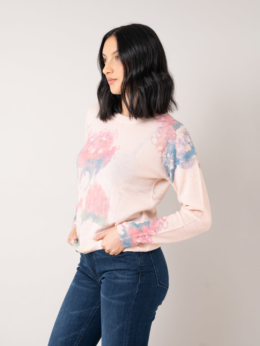 Floral Crew Sweater - Pink Combo
