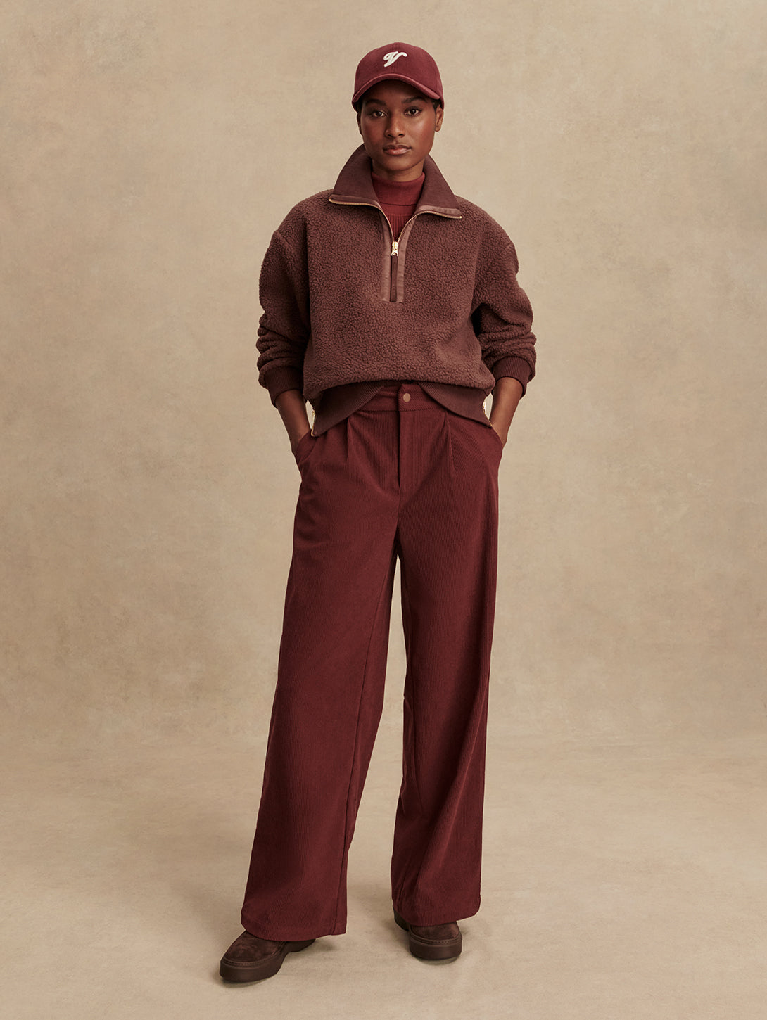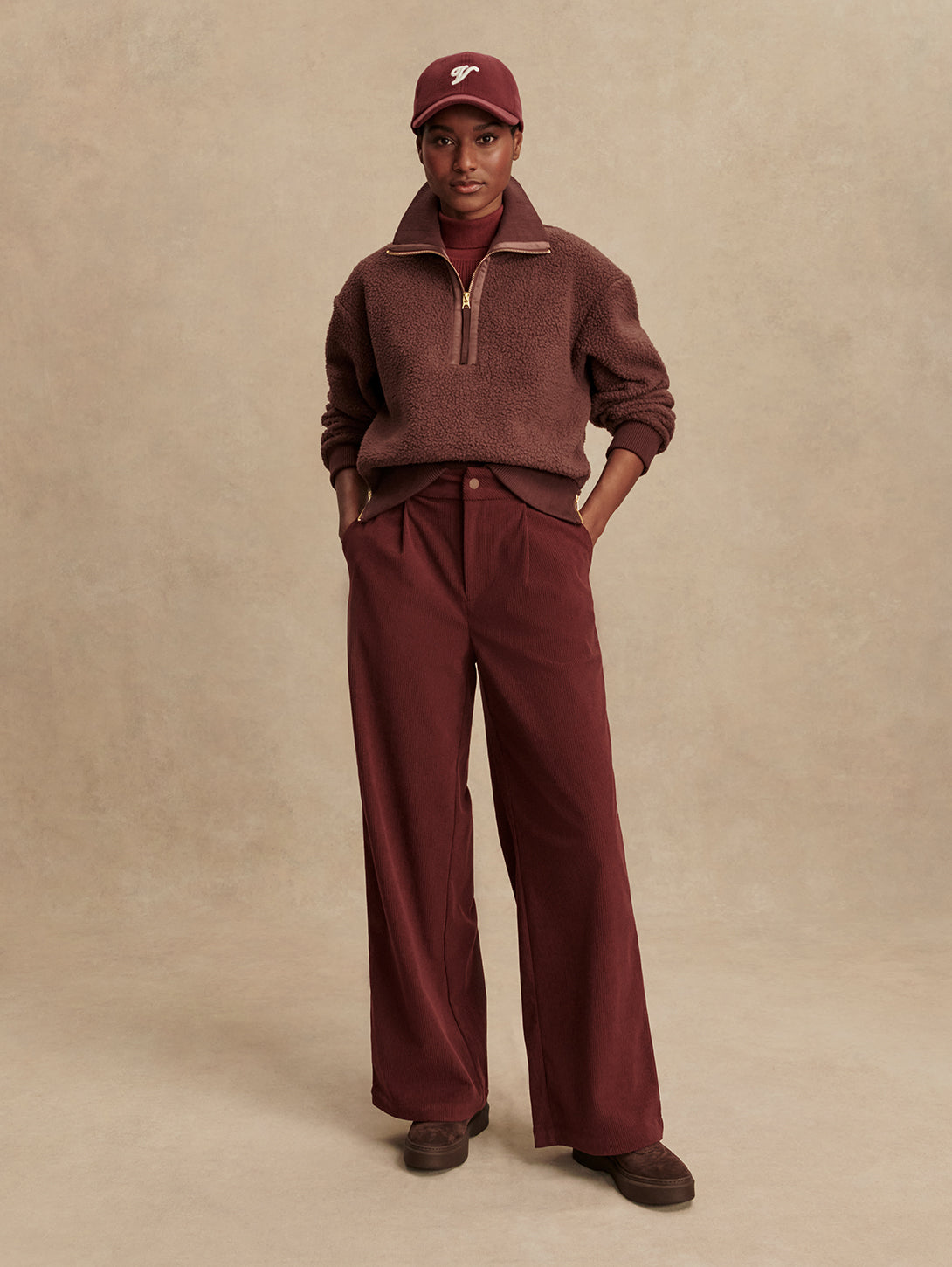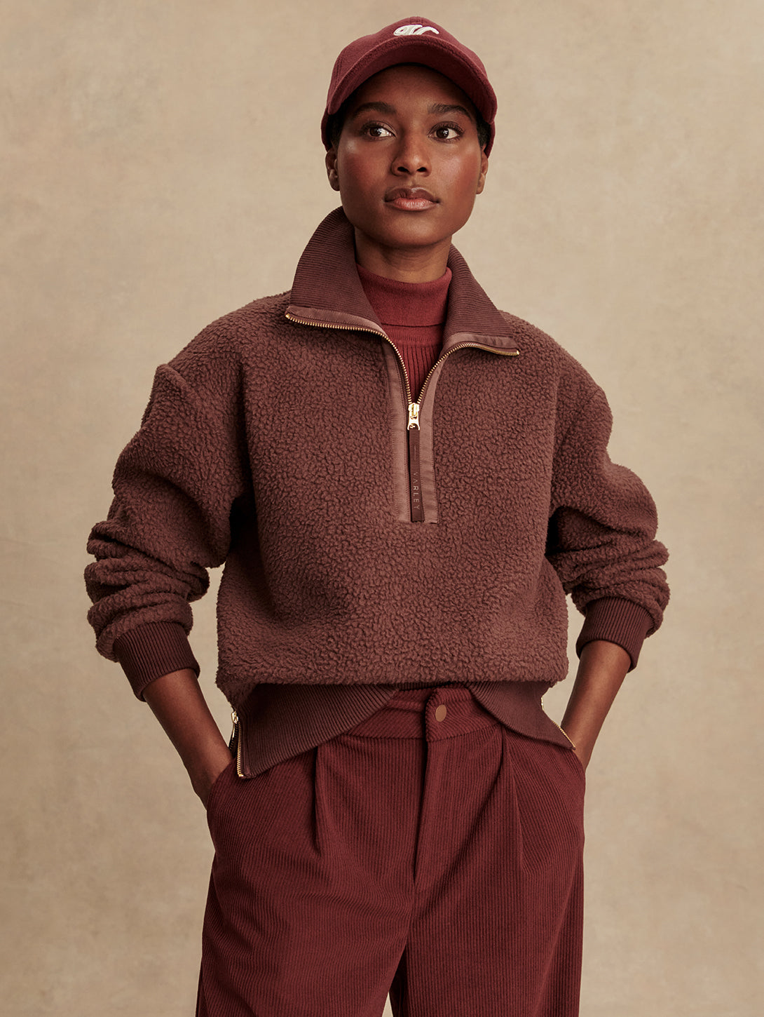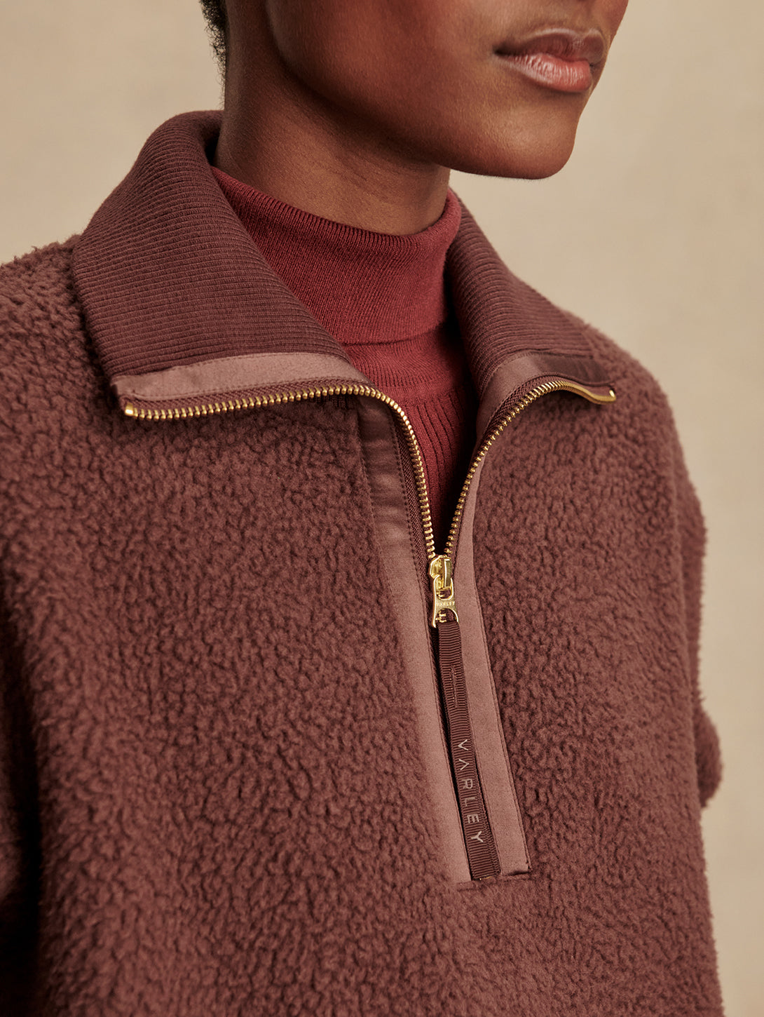 Roselle Half Zip Fleece Top - Deep Mahogany