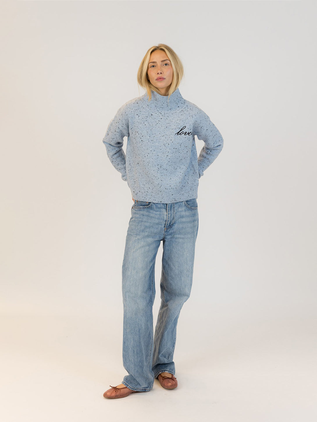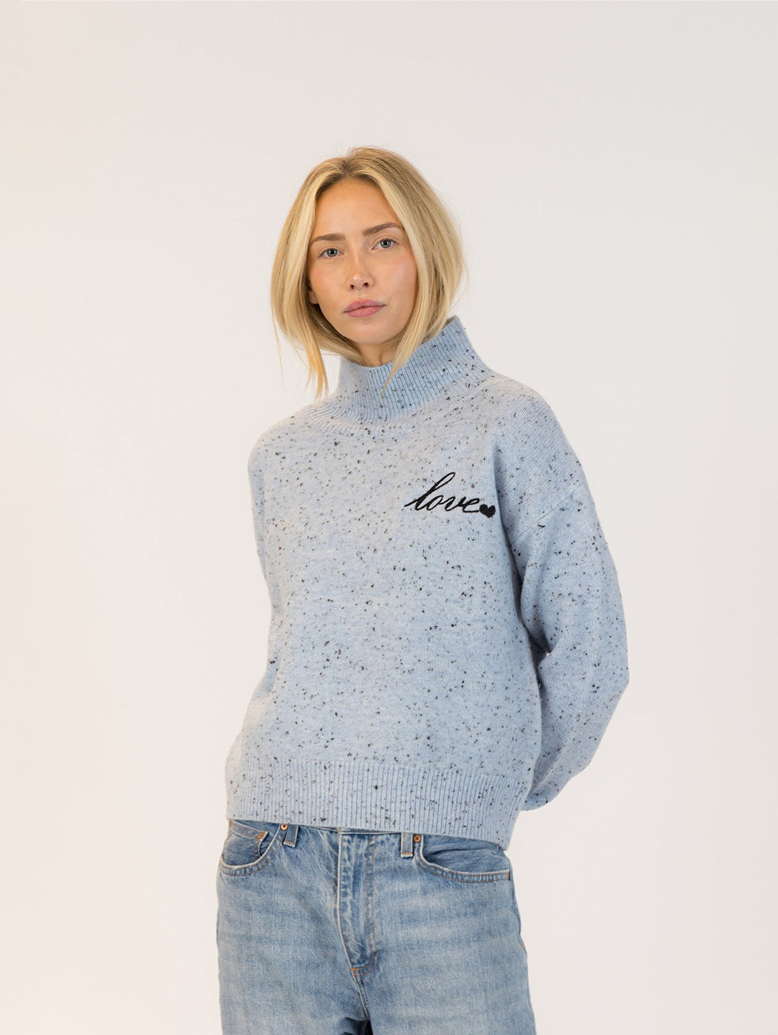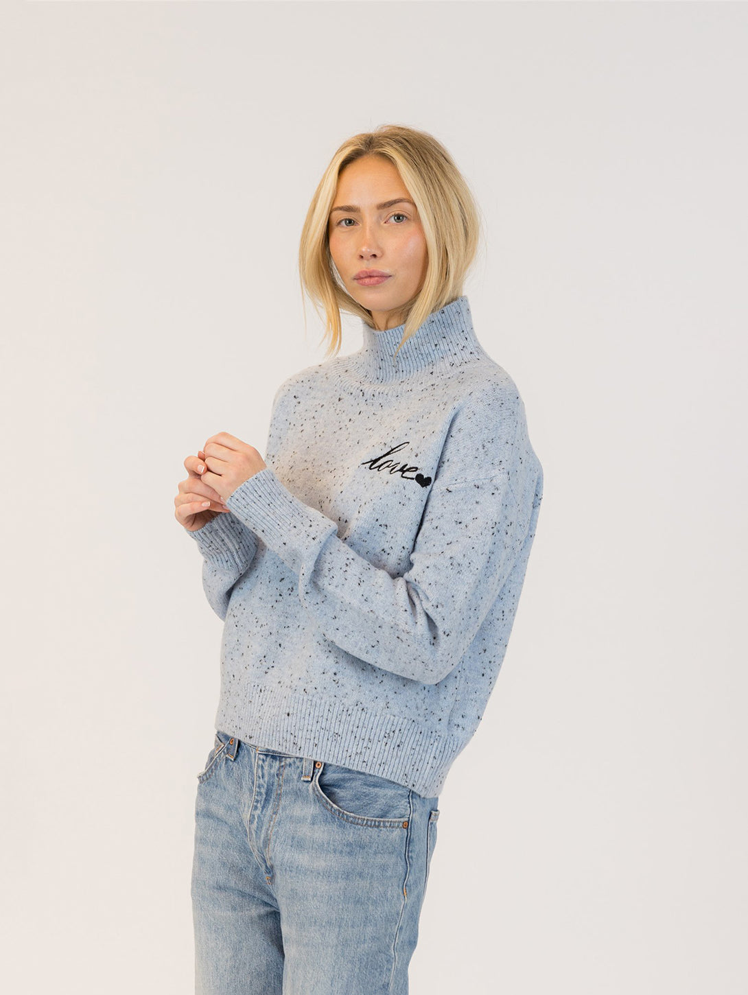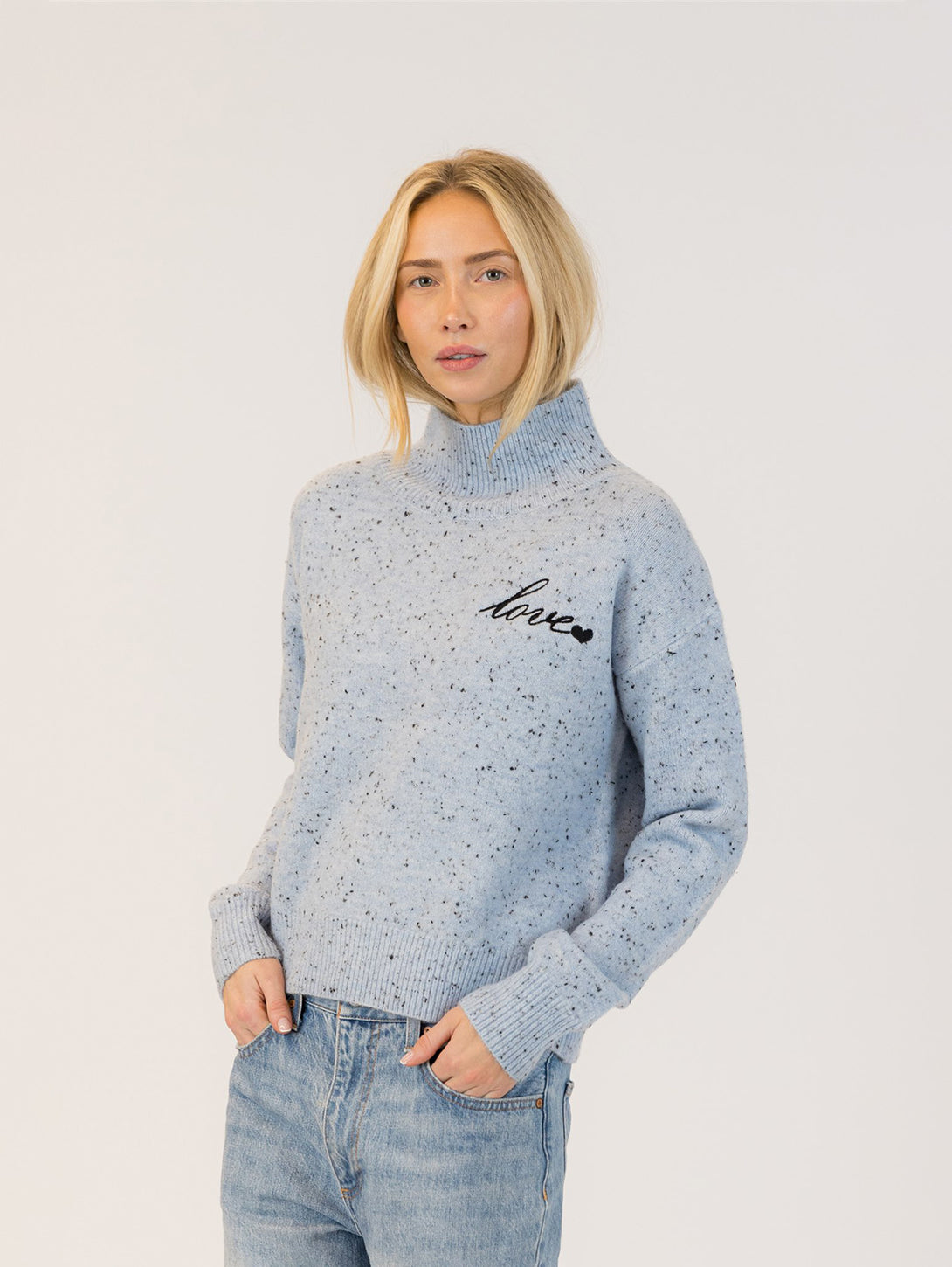 Macy Mockneck Sweater - Light Blue Fleck