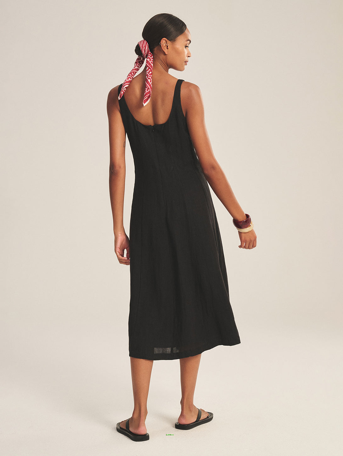 A timeless black linen dress with a clean silhouette and breathable drape. Effortless, versatile, and designed for everyday summer ease.