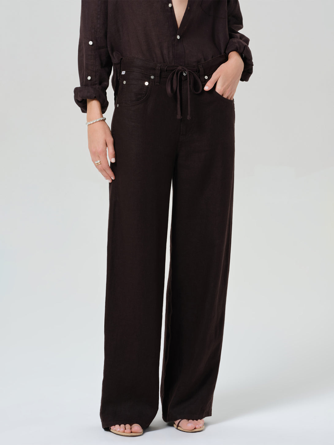 The Brynn Drawstring Trouser offers a relaxed fit with a comfortable drawstring waist, making it the perfect laid-back linen pant. Effortlessly stylish, this versatile trouser pairs beautifully with tonal linen pieces or a matching tank for a chic, coordinated look ideal for warm weather days and vacation-ready escapes.