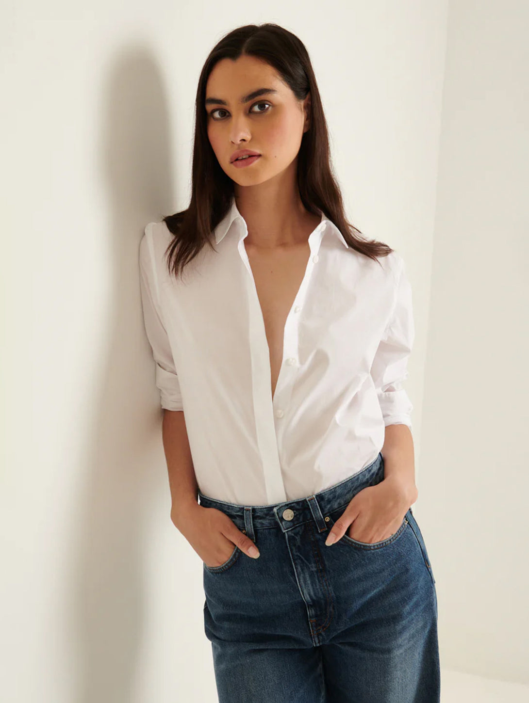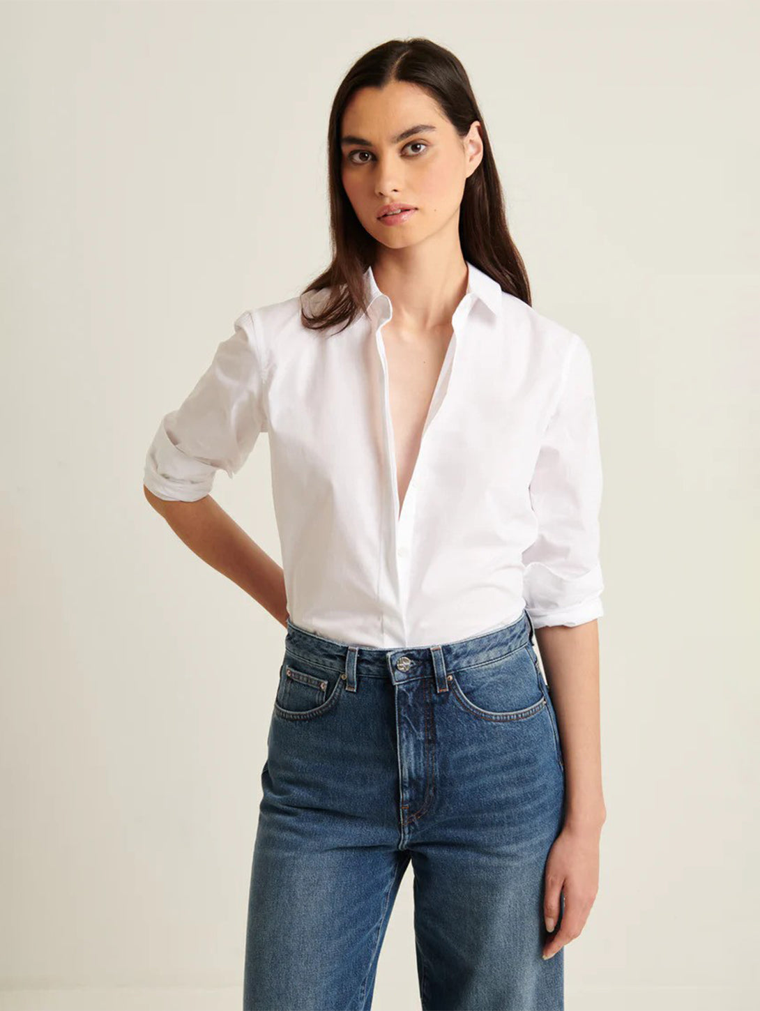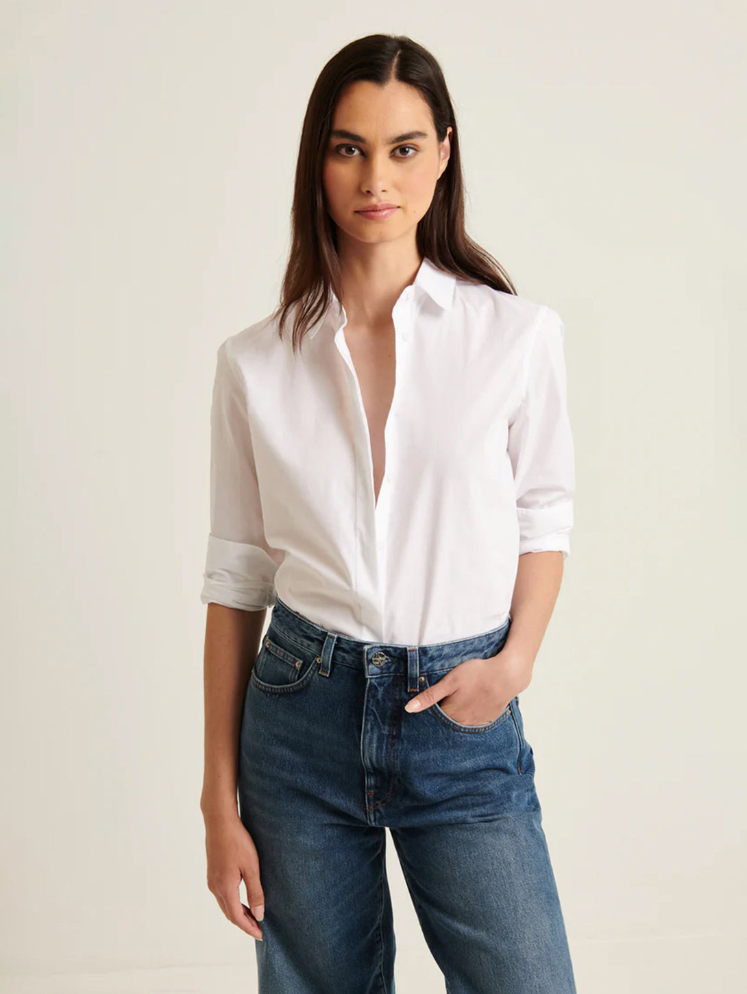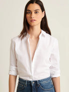 The relaxed shirt is crafted from a high-quality cotton stretch and is a timeless silhouette. Offered in staple seasonal colours, this shirt is a versatile wardrobe staple that can be styled with your favourite Spring denim or trousers.