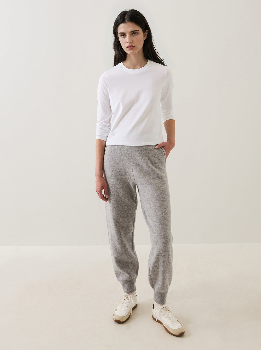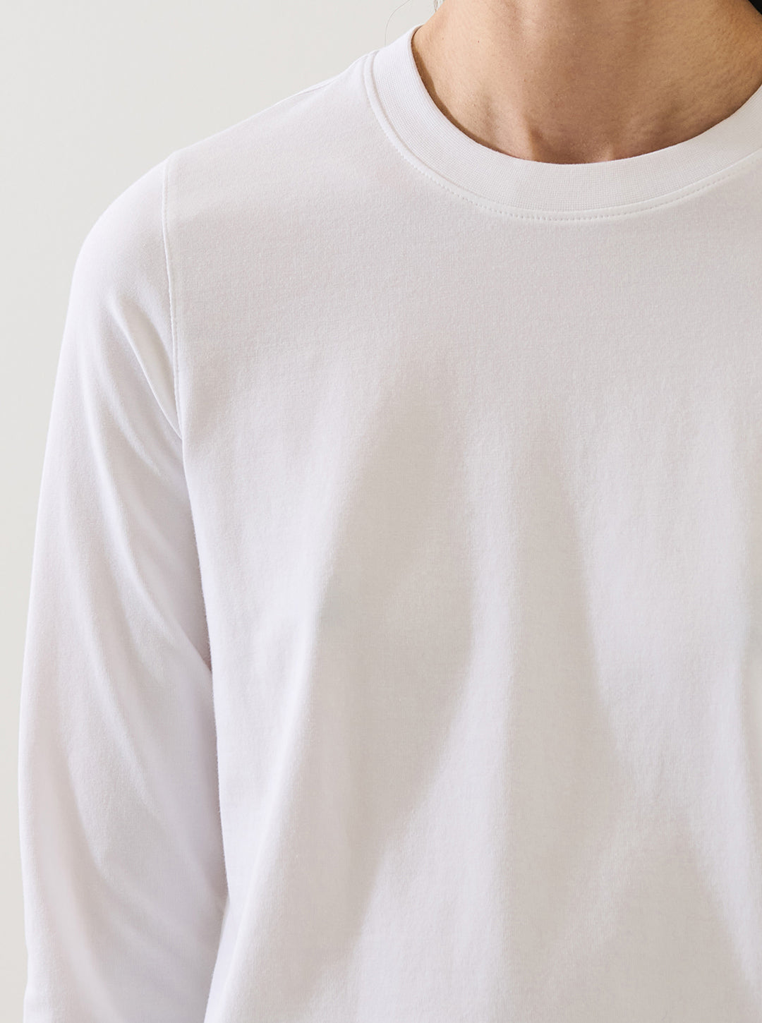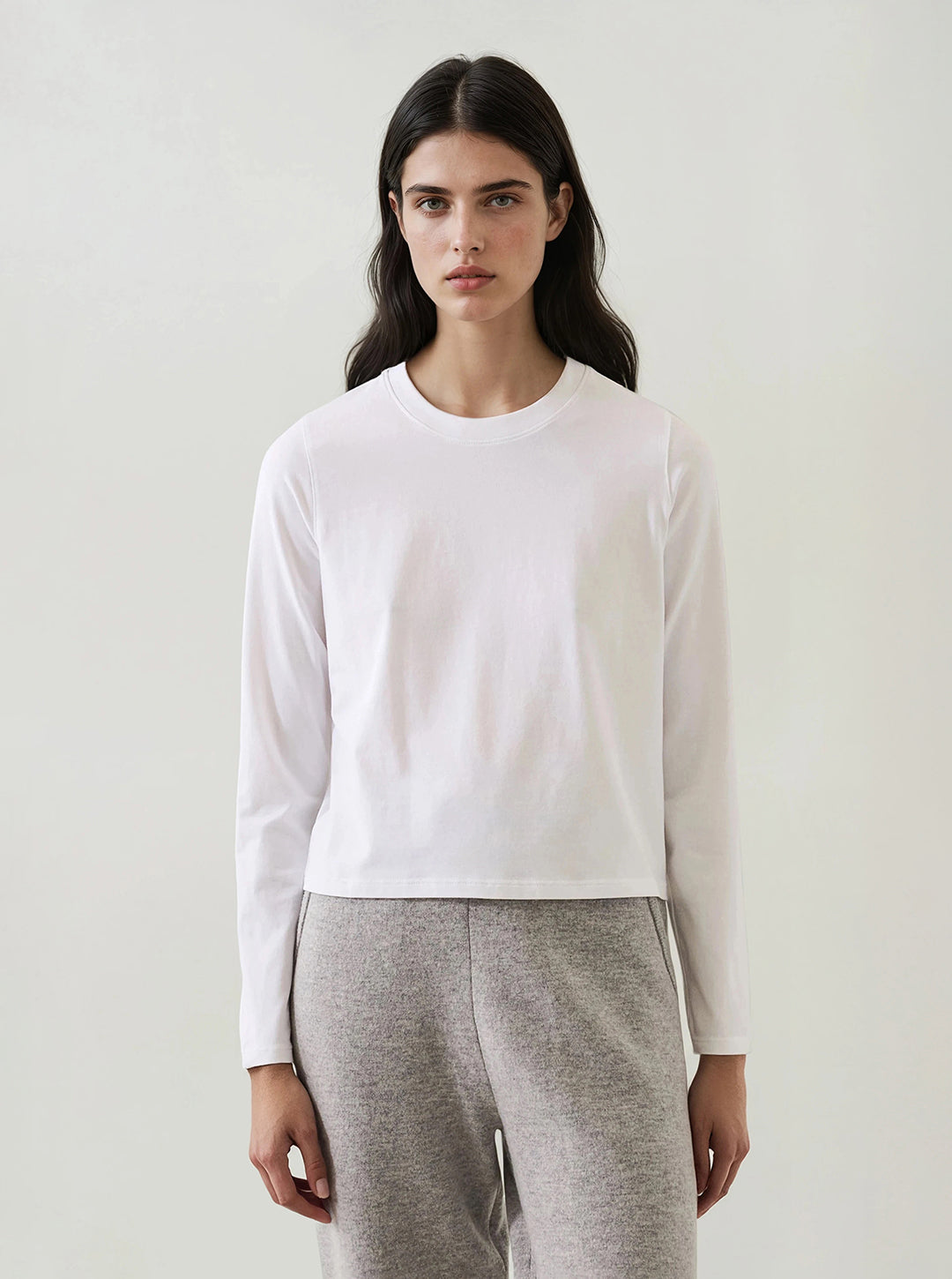 Our long sleeve baby t-shirt is cut from our iconic Peruvian pima cotton stretch jersey and cut in a slightly cropped fit. This piece is designed to be a season less wardrobe essential and is ideal to layer with your favourite denim or trousers.