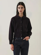 Long Sleeve Merino Button Cardigan - Bordeaux