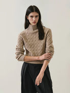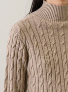 Long Sleeve Merino Cable Mock Sweater - Oat