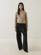 This extrafine merino cable mock neck exudes sophistication and is a timeless wardrobe essential. Featuring beautiful cable detailing throughout, this piece is designed to be effortlessly styled with your favourite high-waisted trouser or denim.