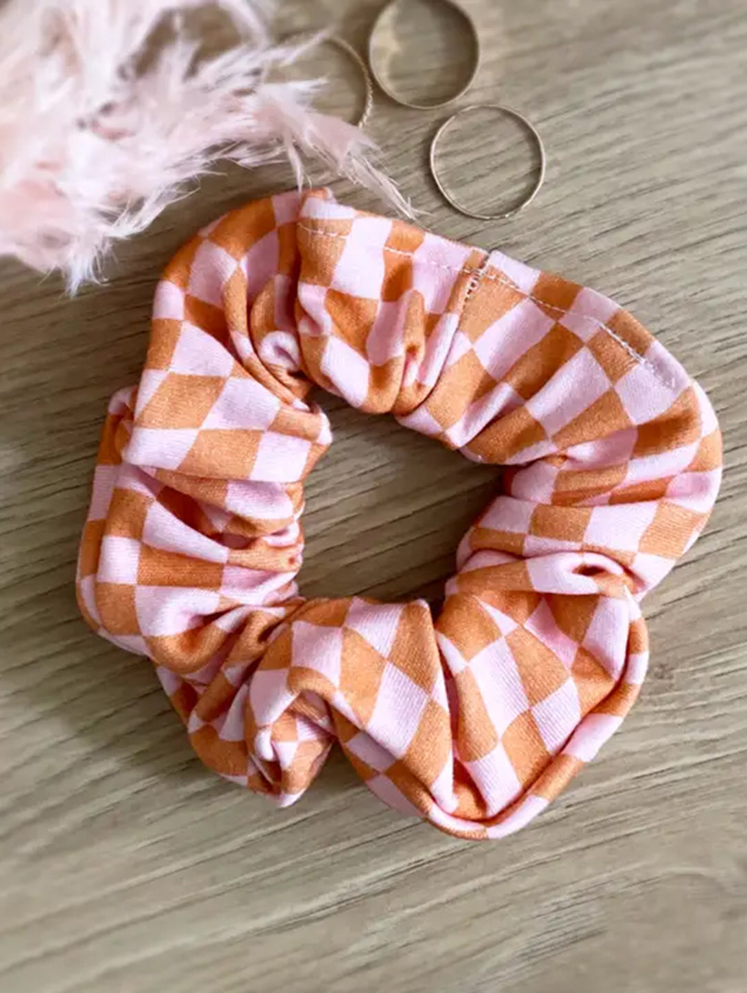Organic Cotton Hair Scrunchie - Mauve Checker