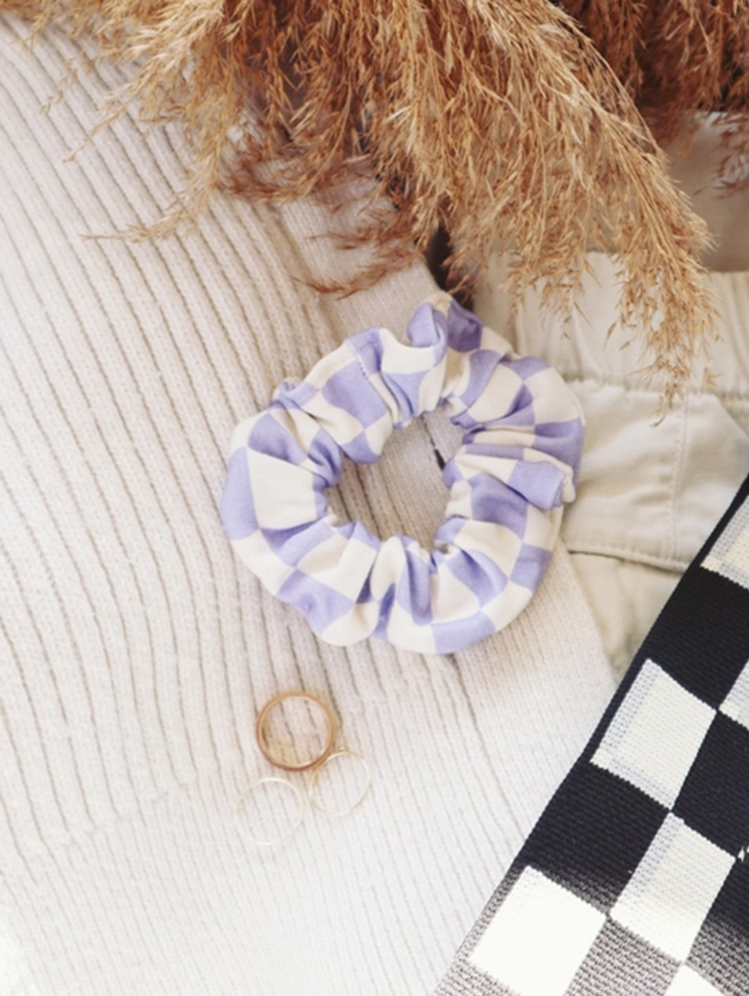 Organic Cotton Hair Scrunchie - Periwinkle Checker