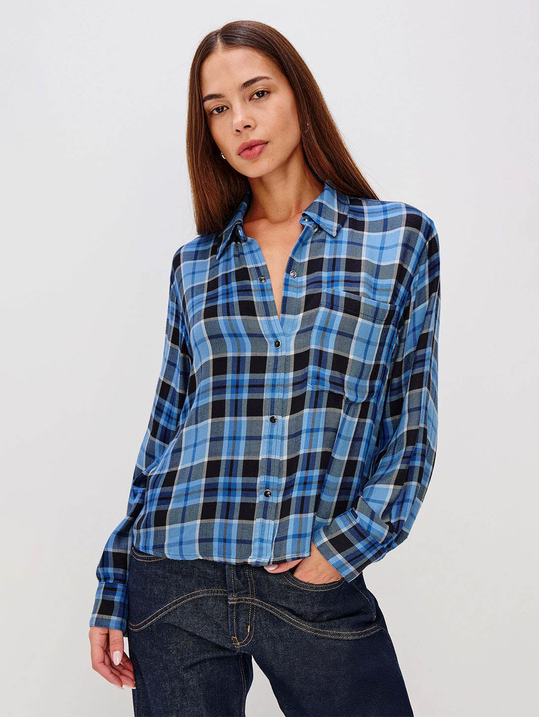 Malin Plaid Shirt - Midnight Blue White