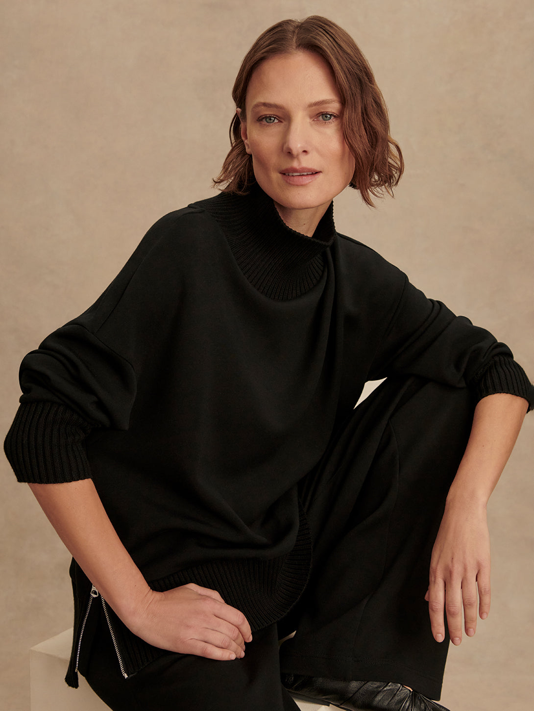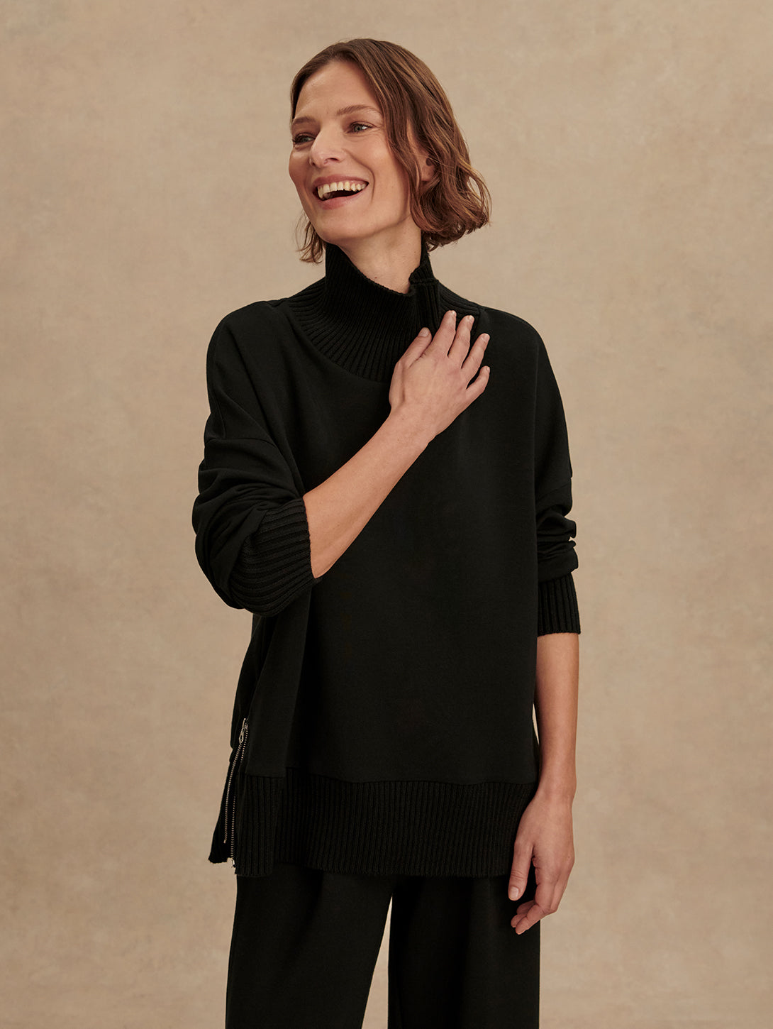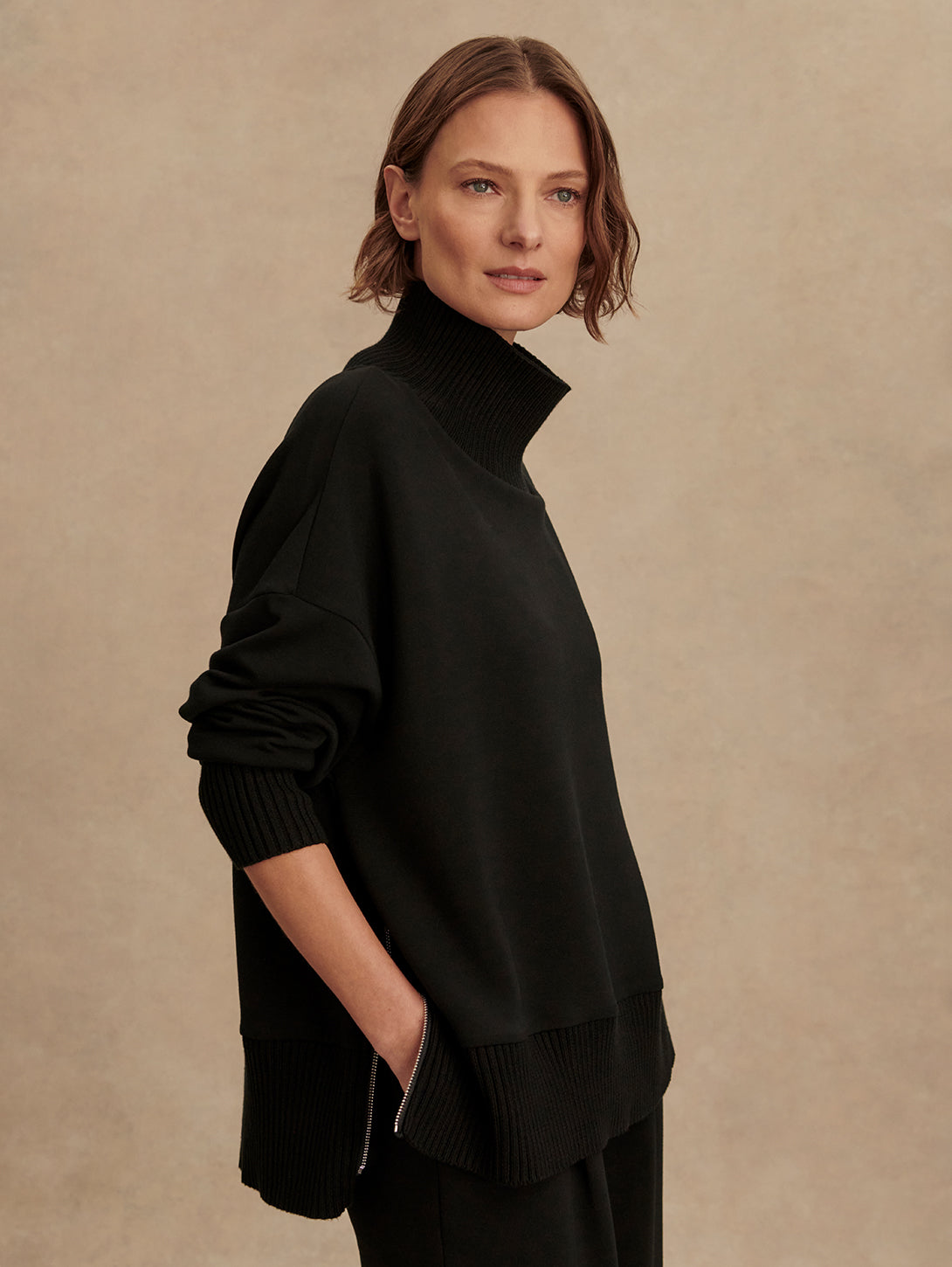 Barker High Neck Sweat Top - Black
