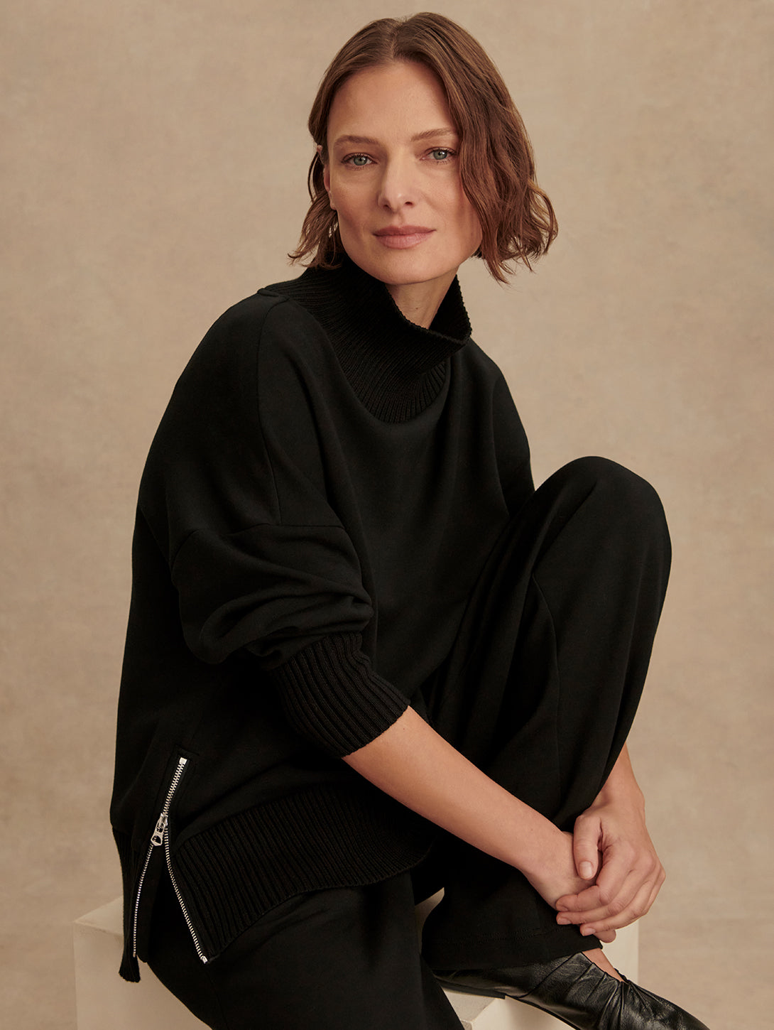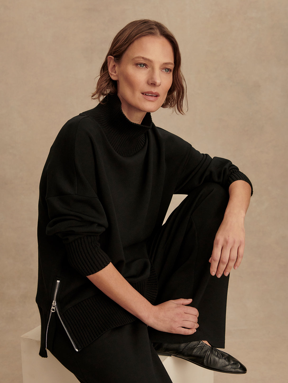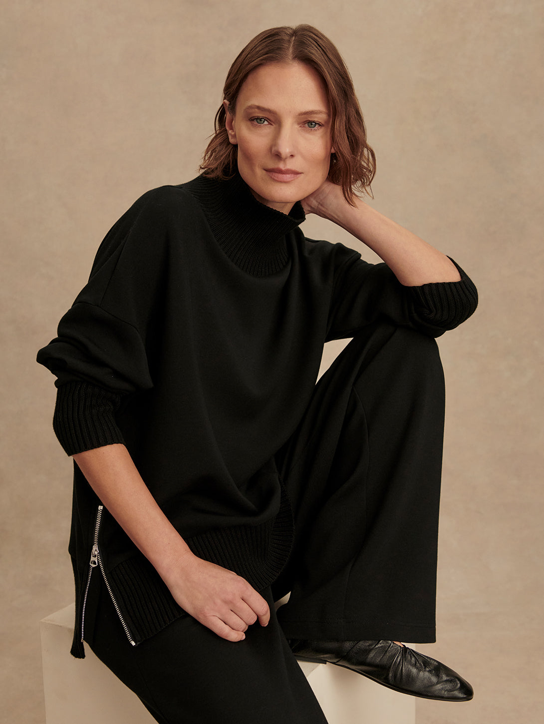 Barker High Neck Sweat Top - Black