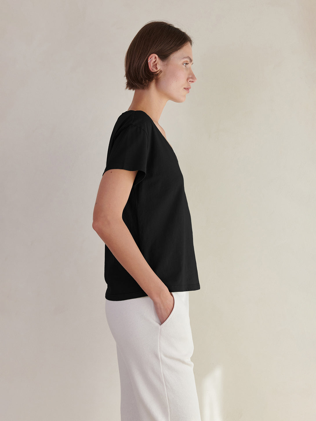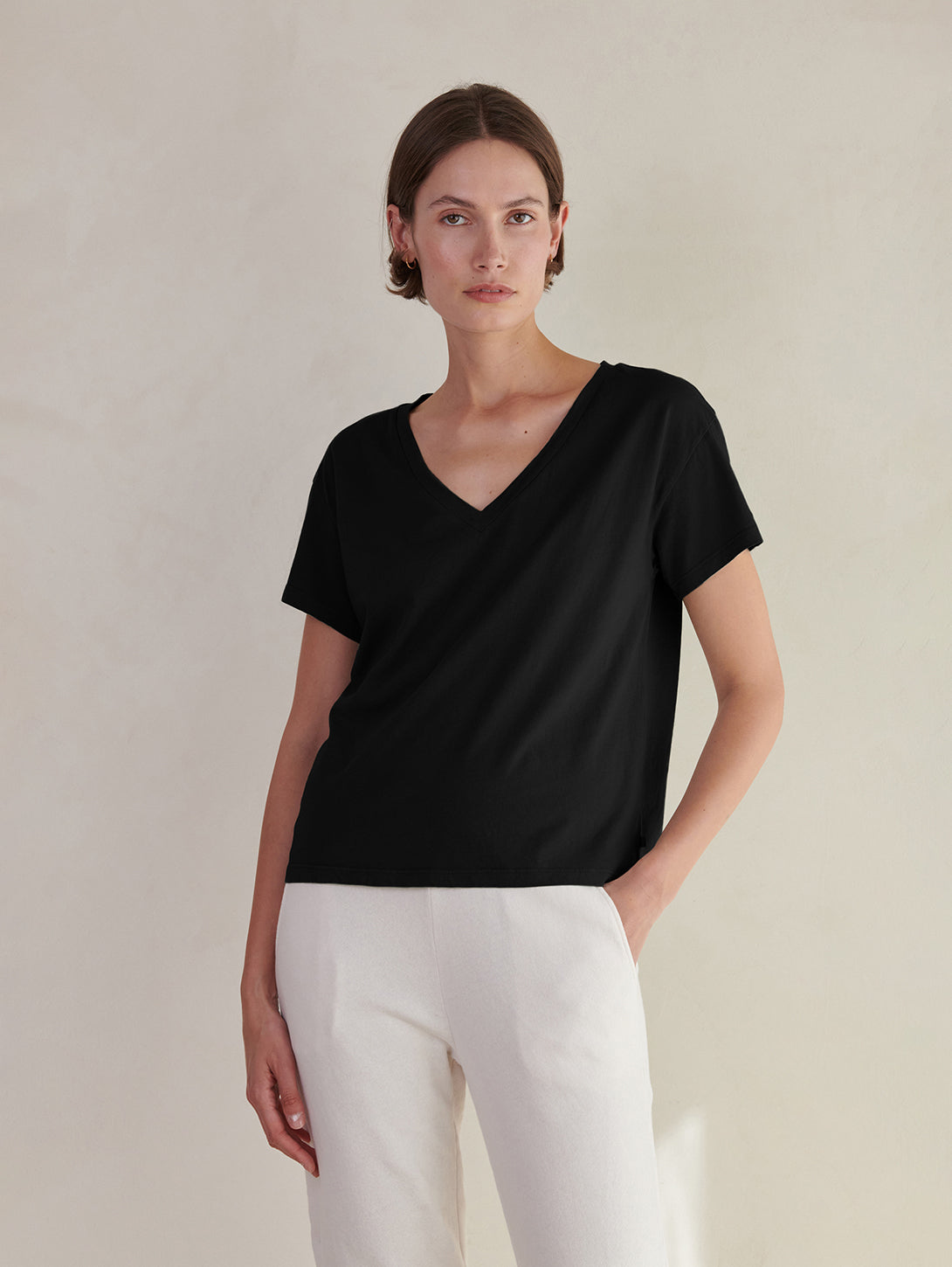 Short Sleeve Venice V-Neck Tee - Black