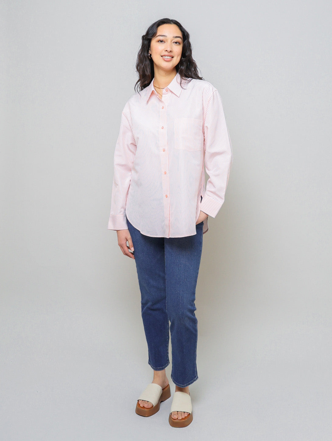 Long Sleeve Boyfriend Shirt - Ecru Black Pinstripe