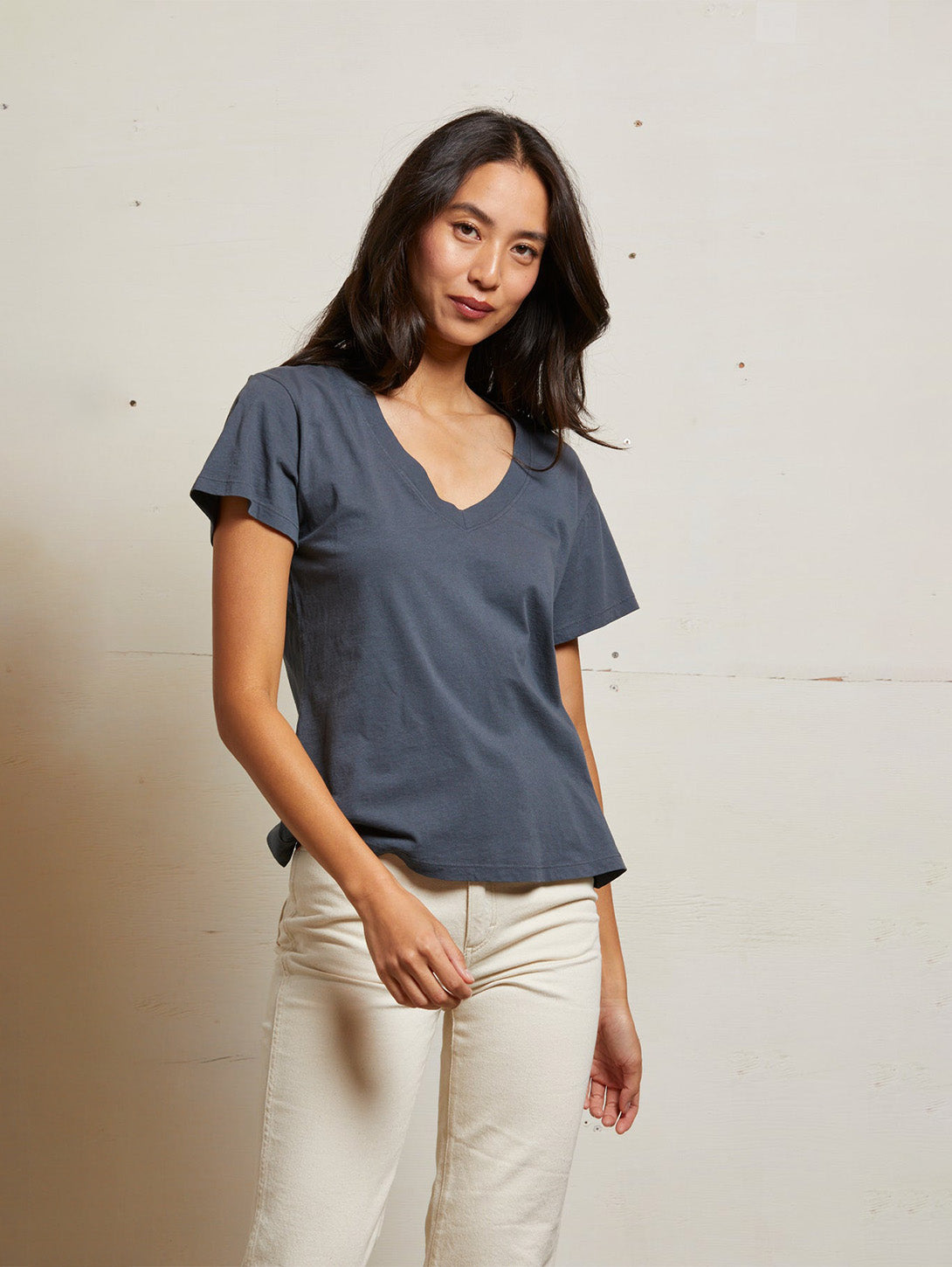 Hendrix Short Sleeve Boxy V Neck Tee - Night