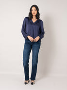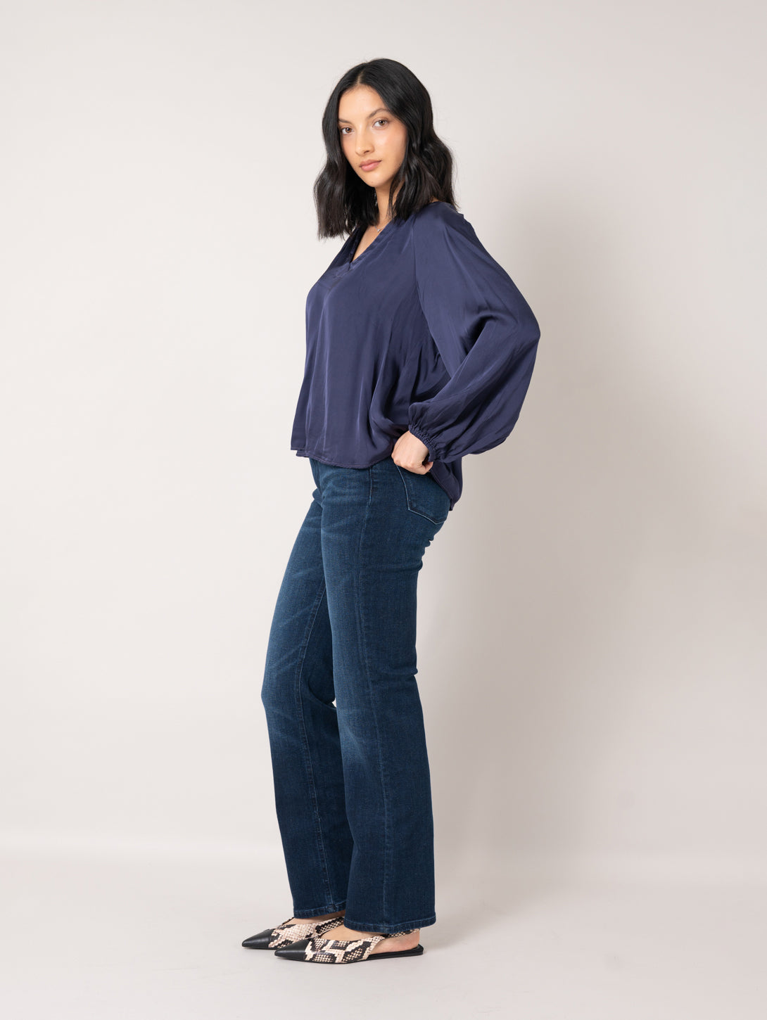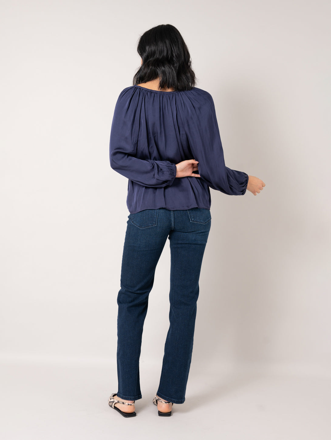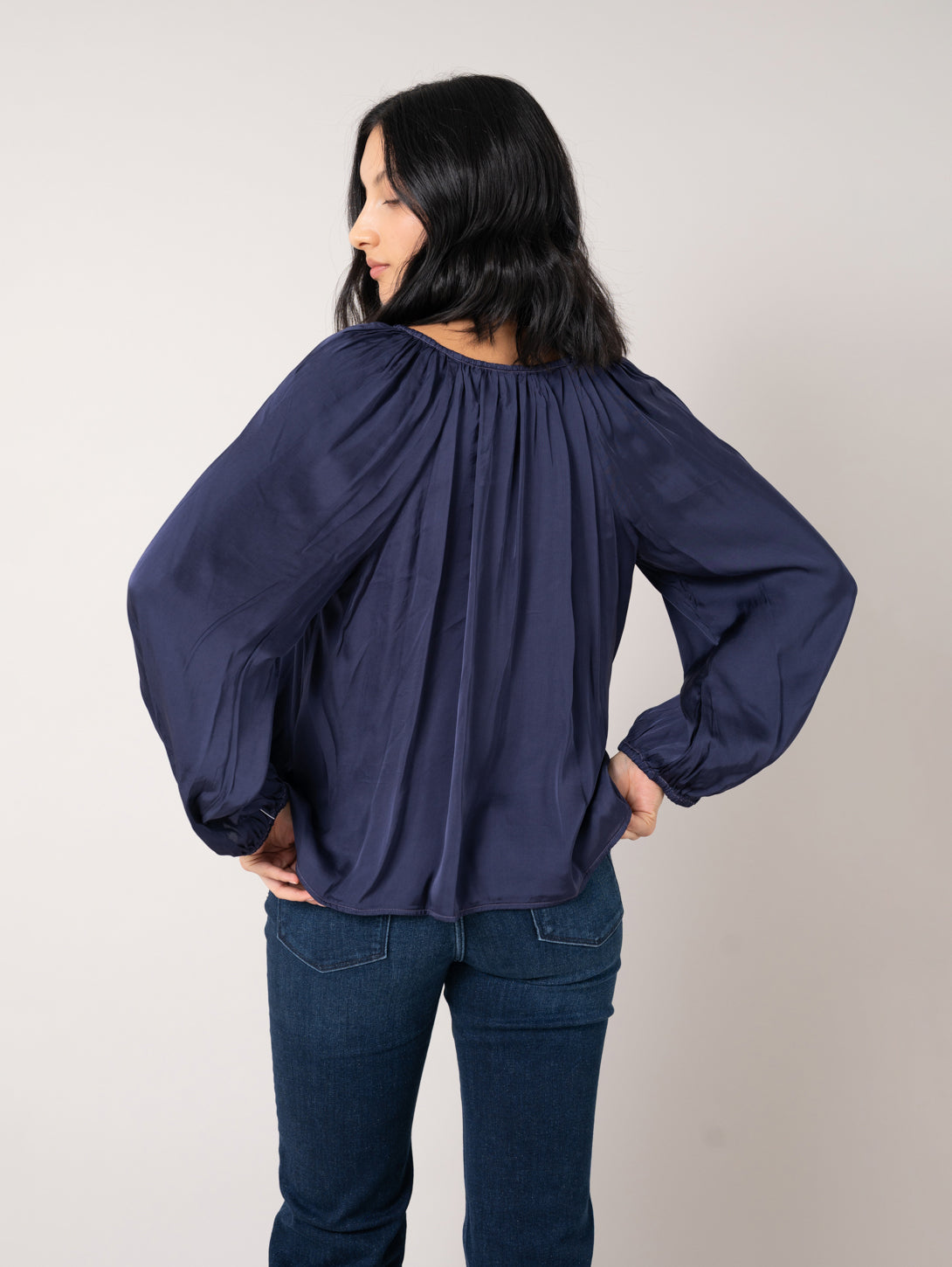 Elegant and lightweight, this satin top features a flattering V-neckline with subtle pleated detailing at the chest and back for added dimension. Offering a refined drape and soft sheen, this stunning piece is an easy choice for both dressy and casual looks. Pairs beautifully with the Larkin Pant.