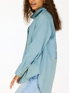 The Mia Shirt Love is a collectors edition in a lightweight denim with Kerri's 'Love on Repeat' artwork printed on the back. Super soft in the lightweight chambray.