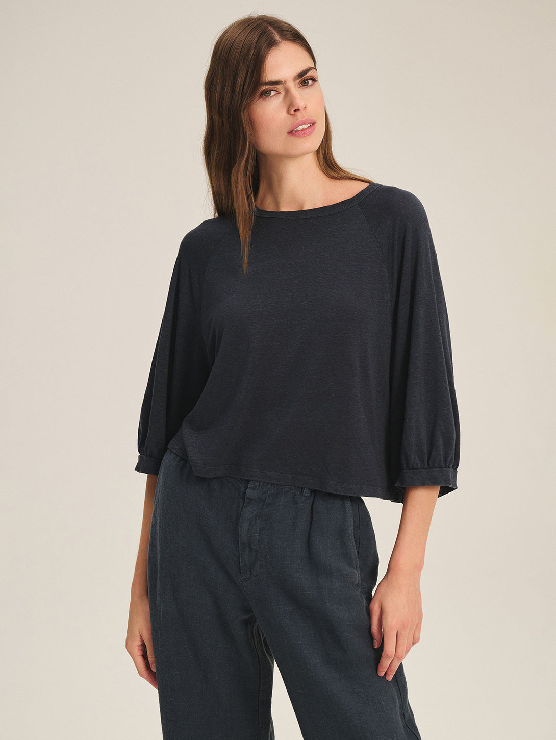 A breezy linen top with an easy fit and everyday versatility. A go-to warm-weather staple.