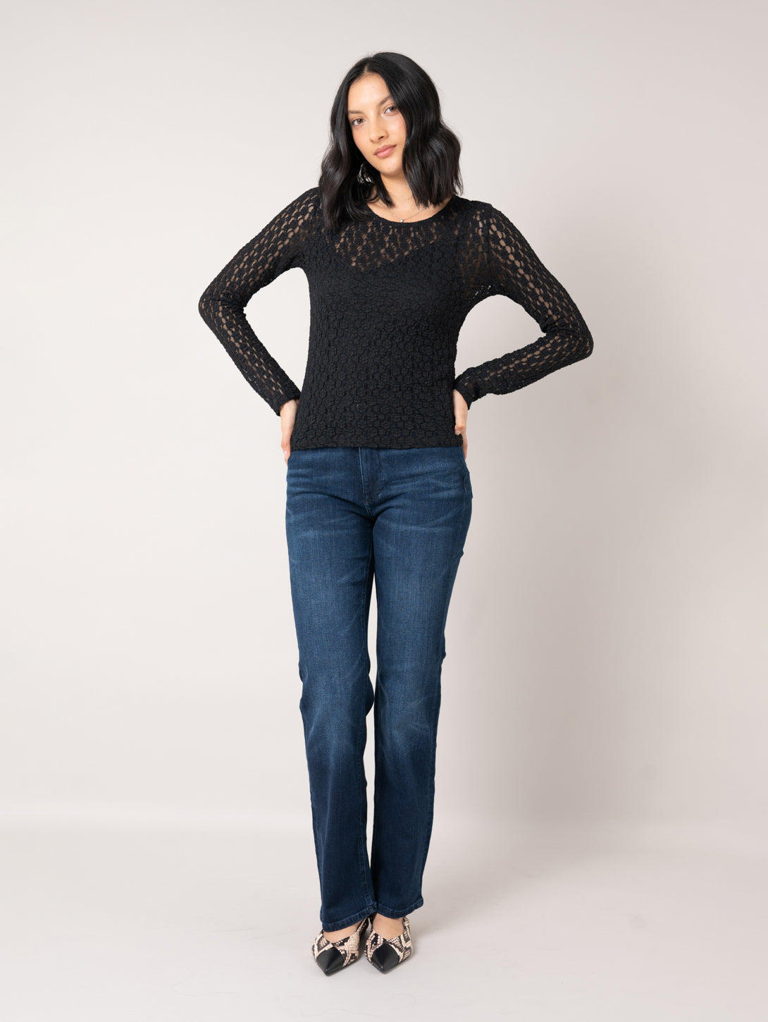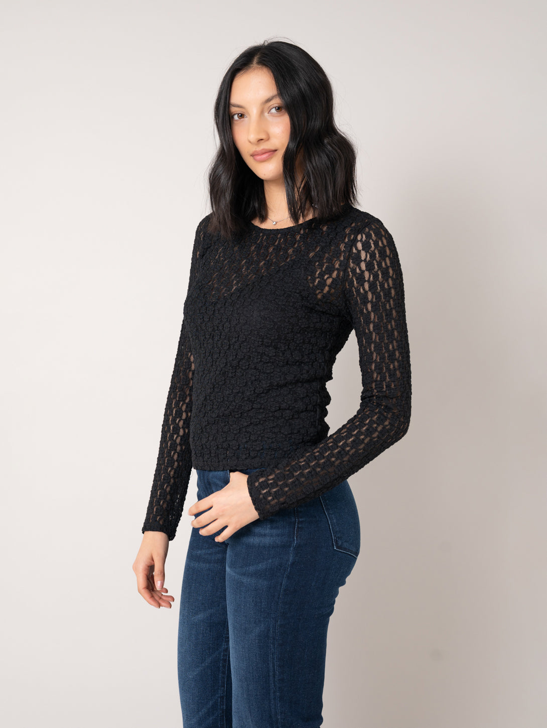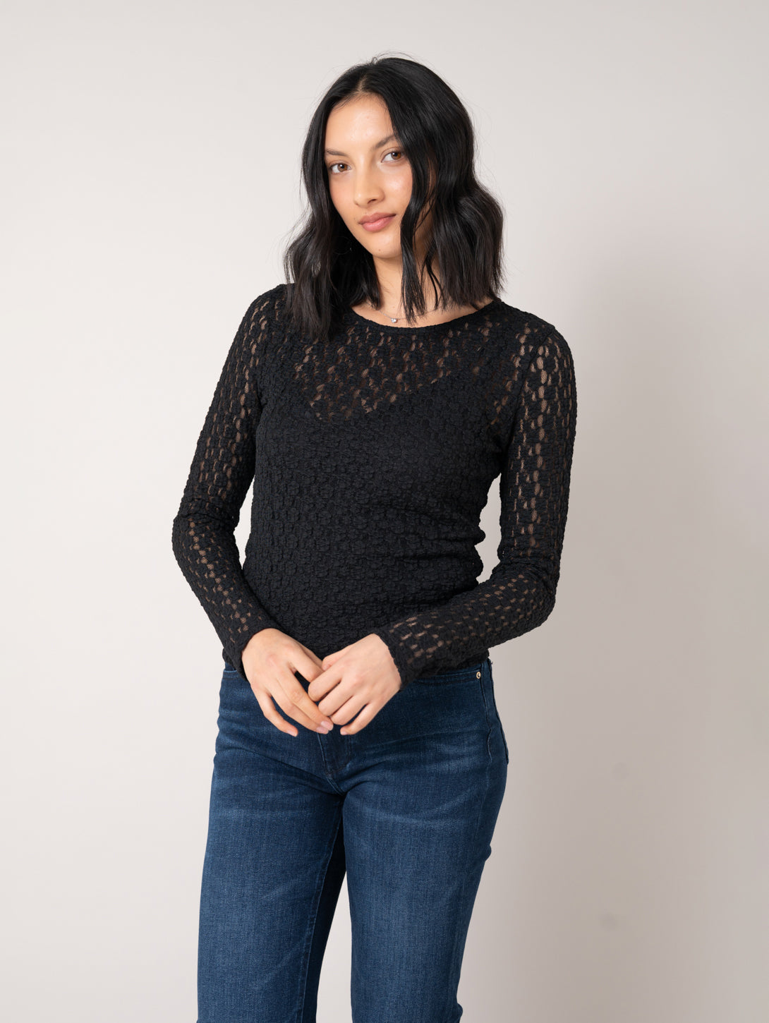 This fully lined stretch lace top is perfect to wear on it own or laid for a sophisticated and elevated look that will take you from day to night.