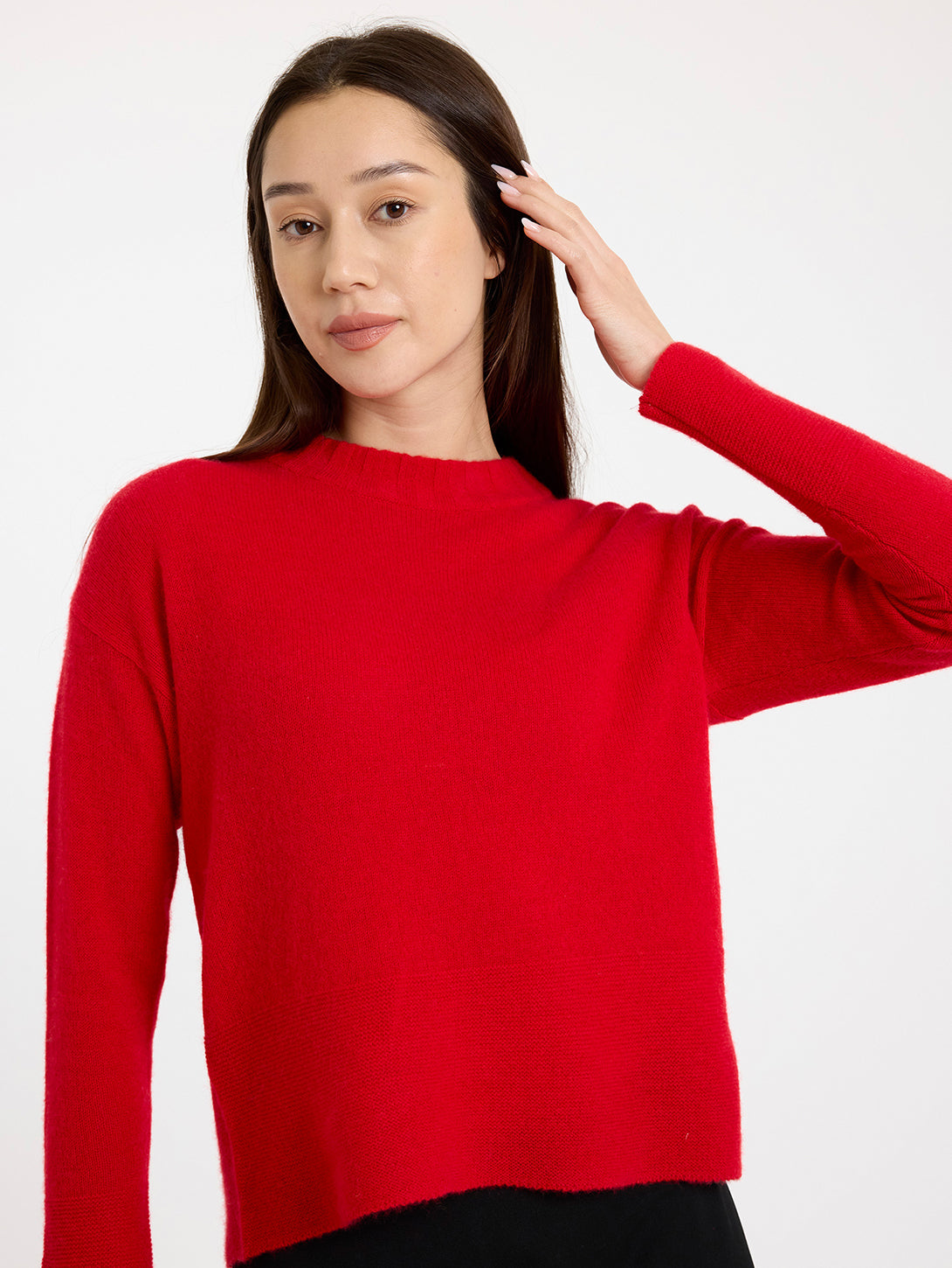 Hi Lo Pleat Sleeve Crew Sweater - Cardinal