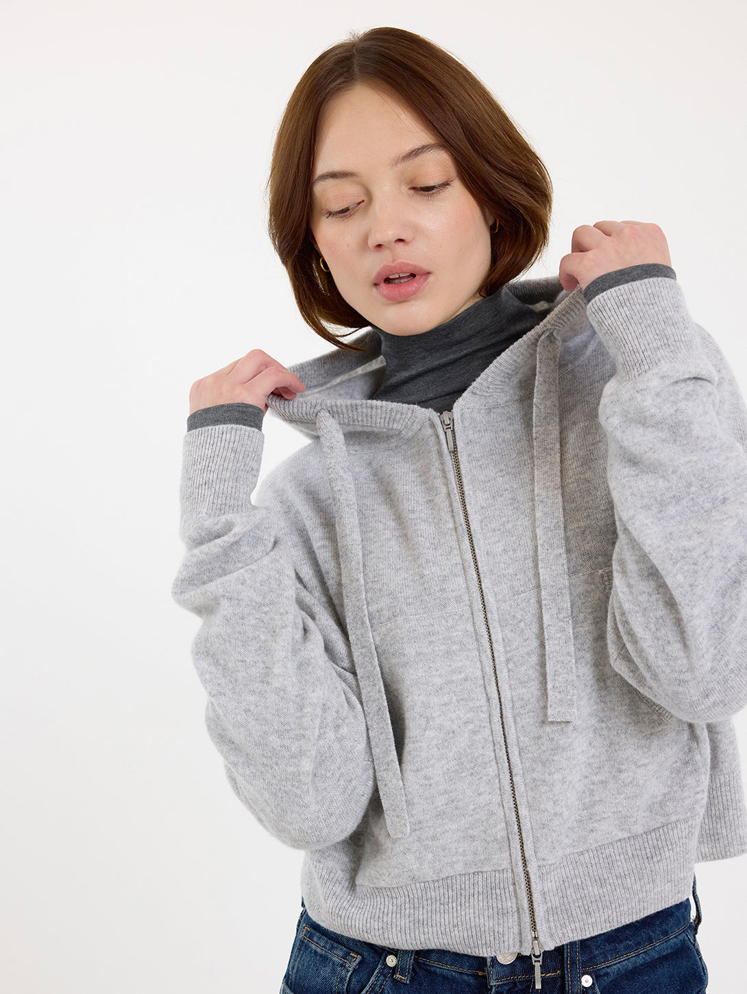 Ruby Zip Crop Hoodie Sweater - Super Grey