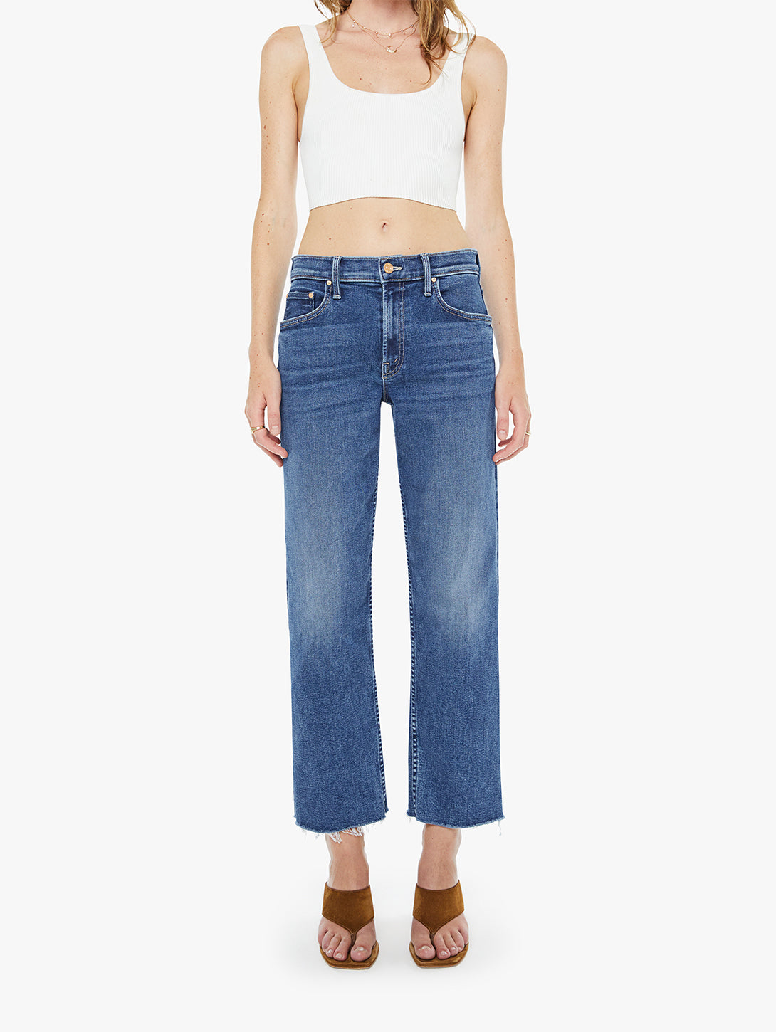 Mid-rise jeans with a straight leg, zip fly and an ankle-length inseam with a clean hem. Cut from stretch denim, Prized Possesion is a mid-blue with whiskering and fading at the knees.