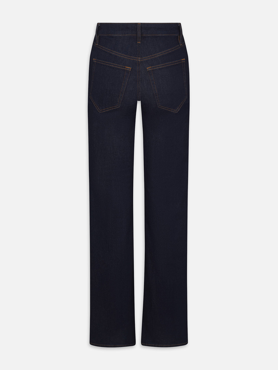 This polished high-waisted trouser blends classic tailoring with all-day comfort. Crafted from soft stretch denim with an elongating full-length inseam.