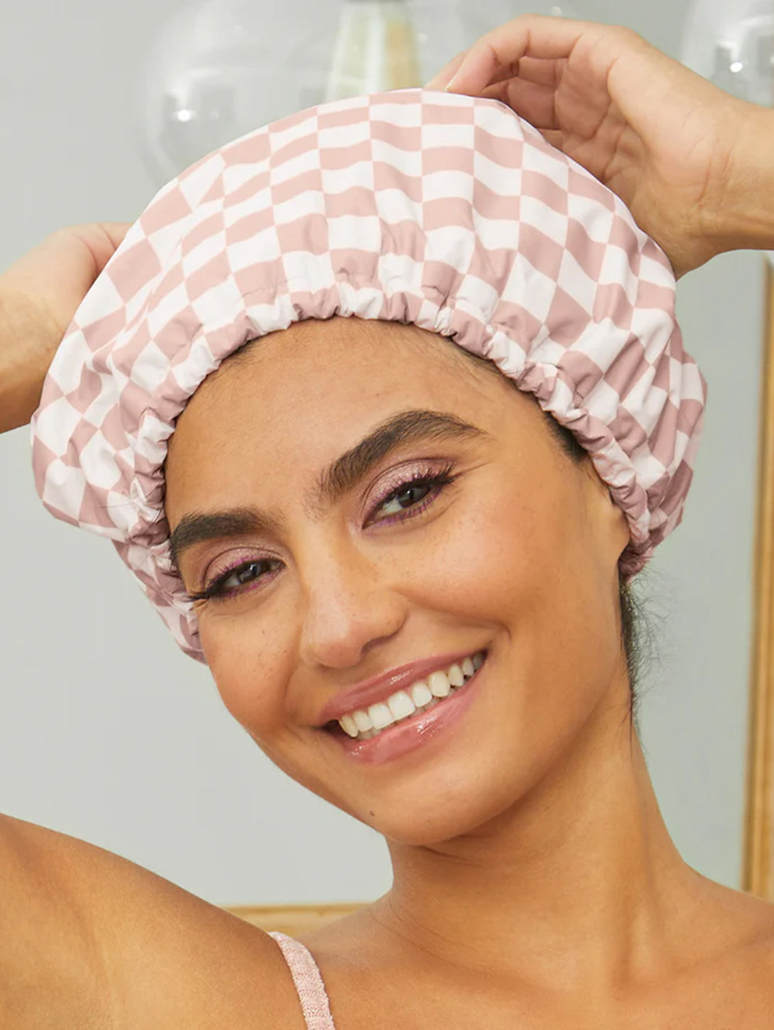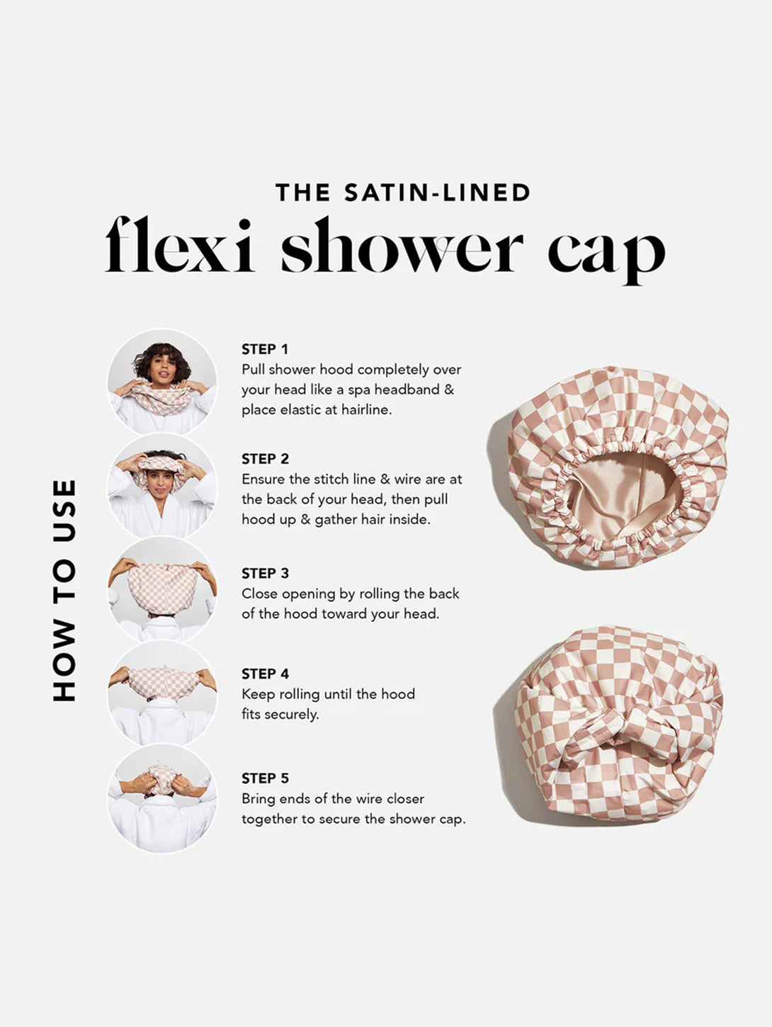 Satin-Lined Flexi Shower Cap - Cherry Print