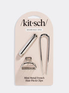 Our KITSCH Mini Metal French Hair Pin & Clips set is a must-have. This 3-piece set, in a sleek silver finish, offers versatile styling options for various hair types and styles. Whether you're dressing up for an event or need a quick hair fix, these clips provide an easy and reliable solution. Made sustainably, they reflect our commitment to providing elevated beauty solutions. Start your day with KITSCH, a brand built on positivity and hard work.