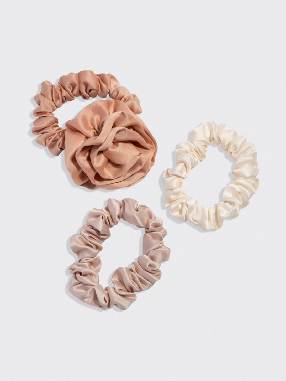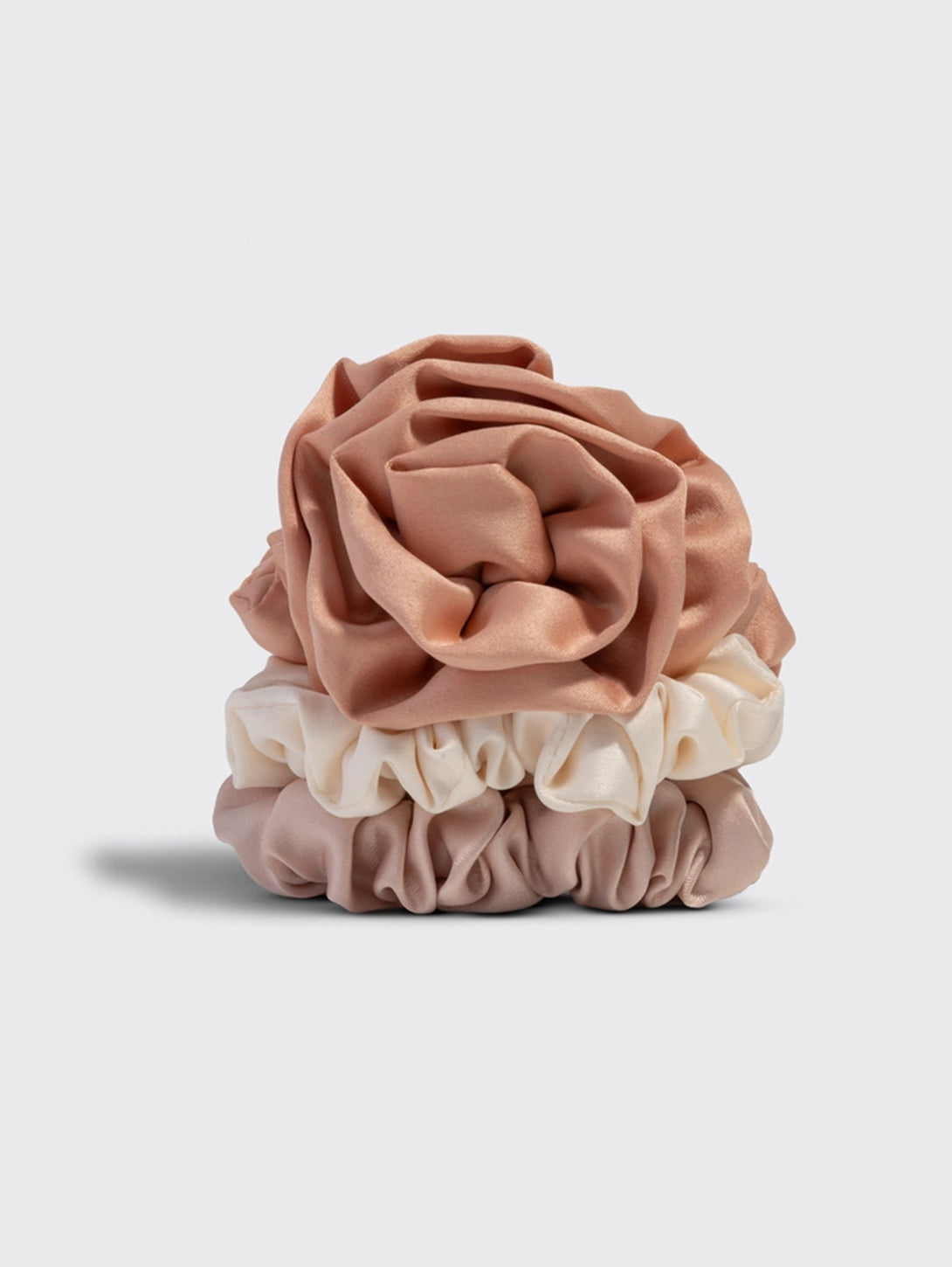 Rosette Ruched Satin Scrunchies 3pc Set - Terracotta