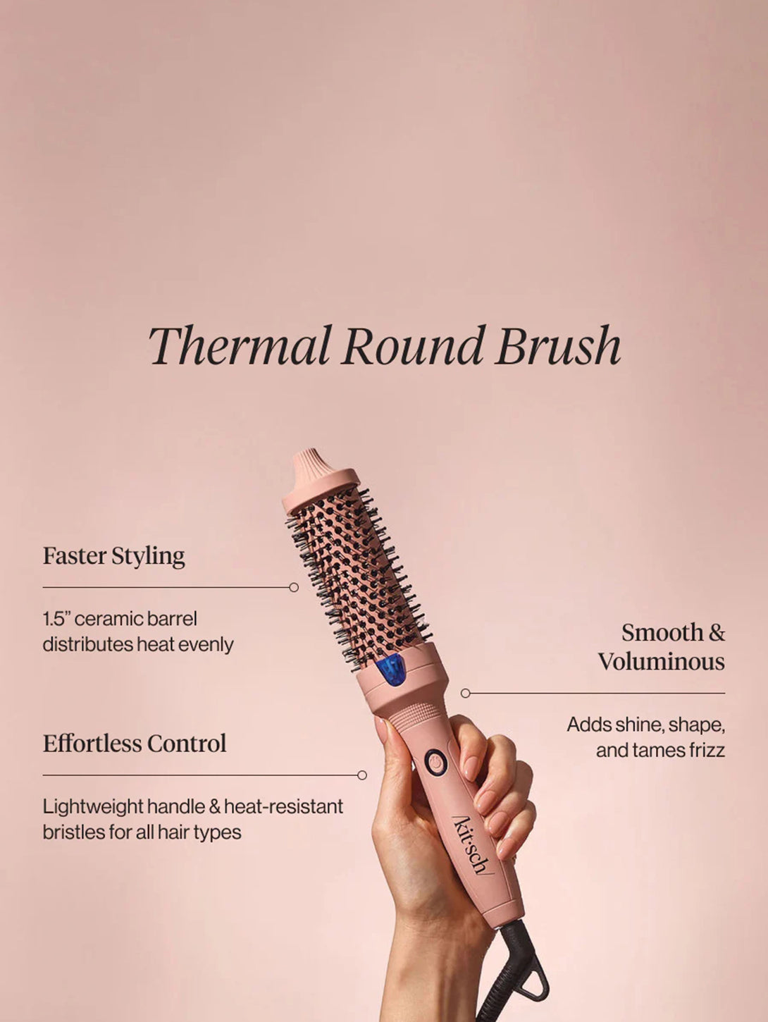 Shiny, bouncy, frizz-free hair in less time. The Kitsch Medium Thermal Round Brush’s 1.5” ceramic barrel boosts volume, smooths strands, and is lightweight and gentle for flawless blowouts on all hair types.