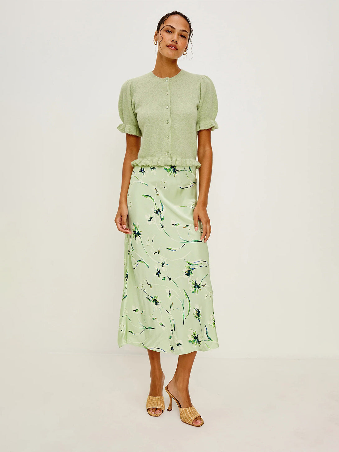 Anya Print Long Skirt - Mint Linnea